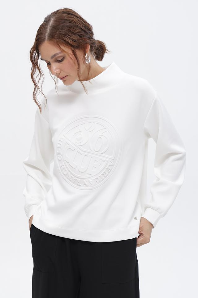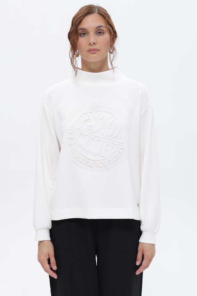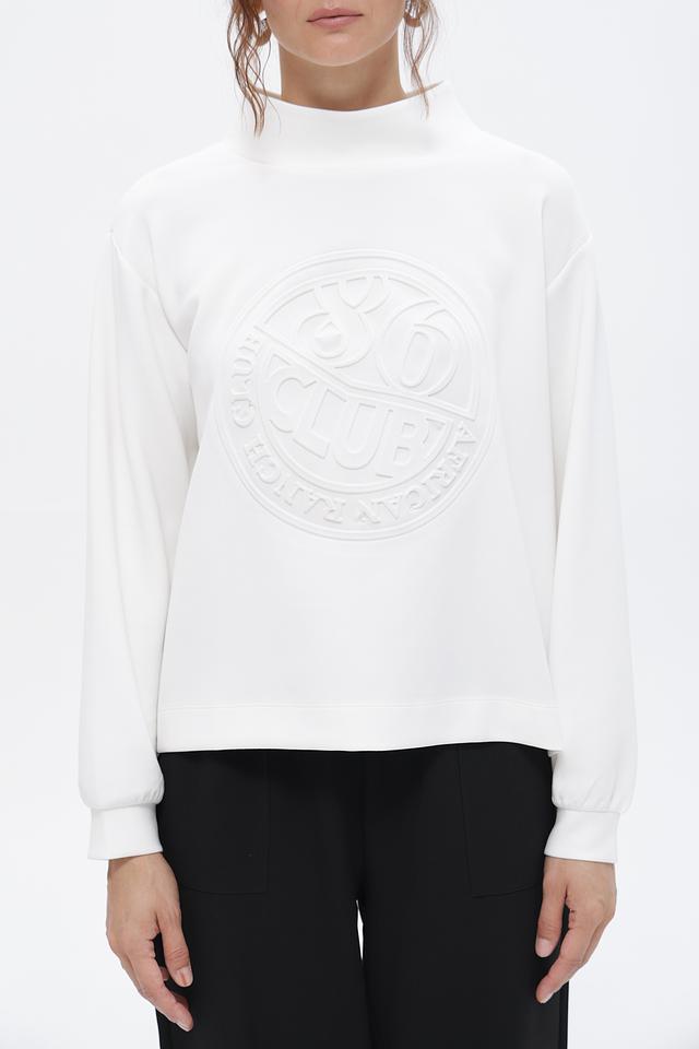 Белый пуловер Monari с объёмным логотипом – комфорт и стиль в каждой детали. Изготовлен из мягкого модала с добавлением полиэстера и эластана для удобной посадки и долговечности. Состав: модал 52%, полиэстер 42%, эластан 6%