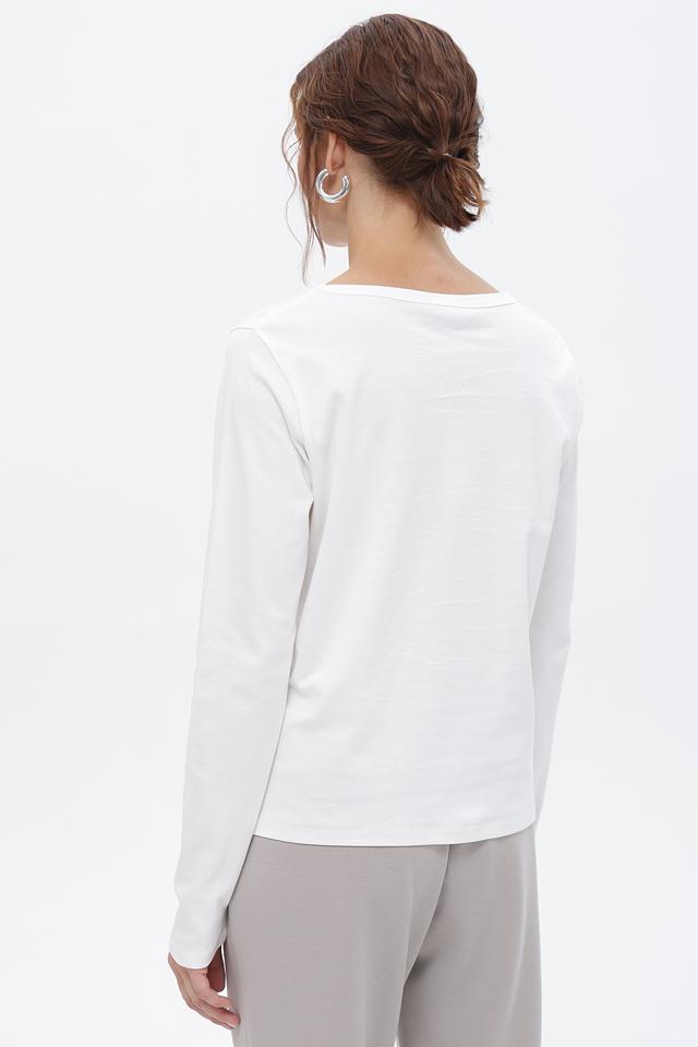 Белая футболка Monari с длинным рукавом станет базовой вещью в вашем гардеробе. Модель выполнена из мягкого, приятного к телу 100% хлопка, что обеспечивает комфорт в течение всего дня.