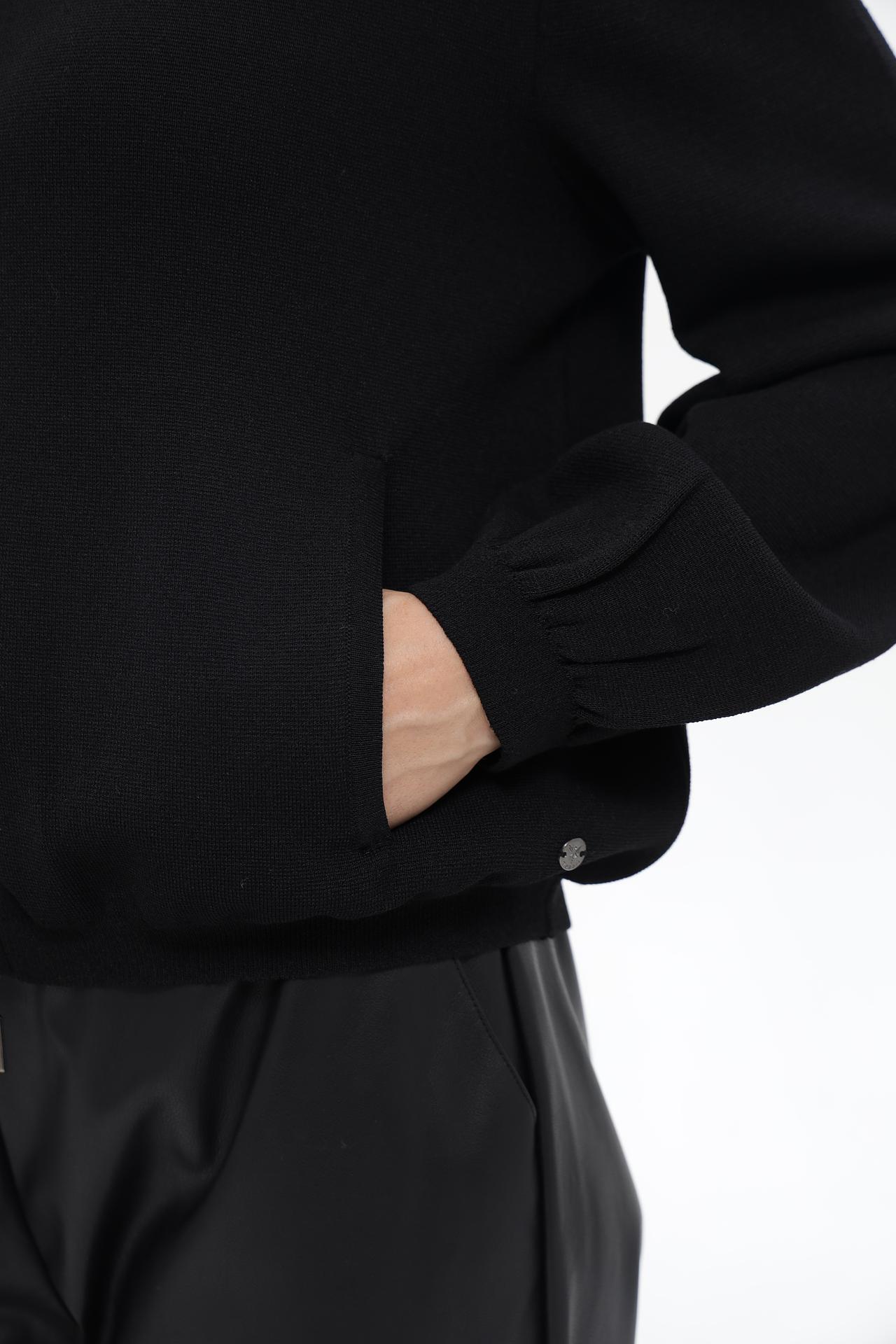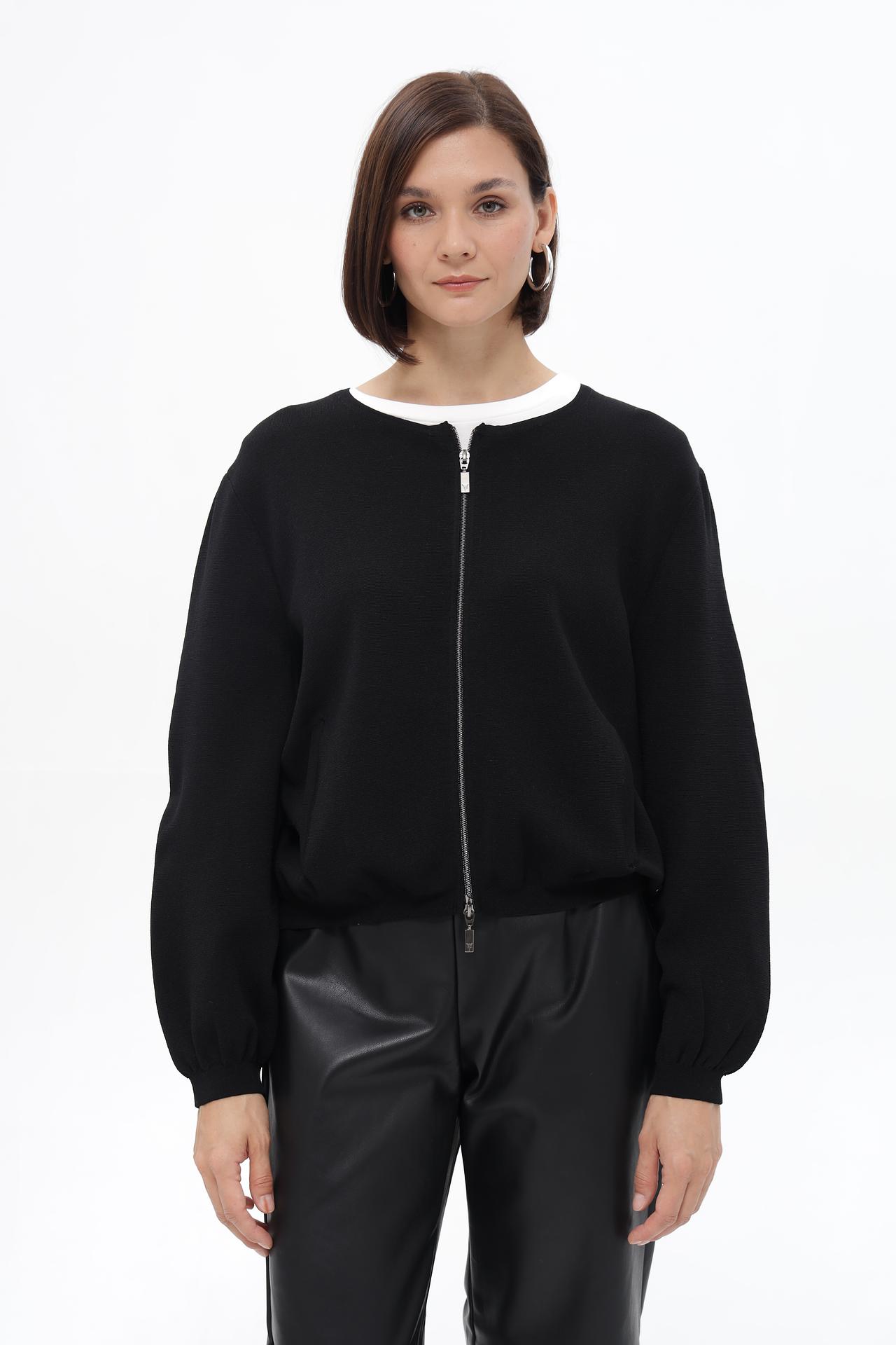 - Дизайн: Классический прямой крой с круглым вырезом горловины и центральной застежкой-молнией. Рукава с эластичными манжетами добавляют образу легкости и объема. Аккуратные карманы на молнии практичны и функциональны.