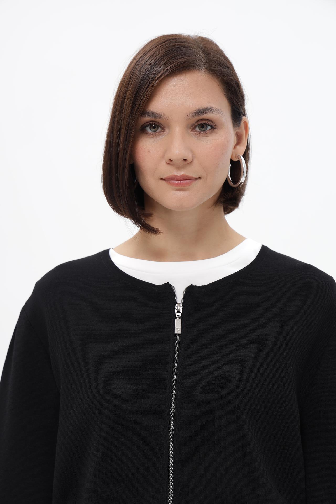 - Универсальность: Черный цвет является базовым и легко сочетается с любыми другими оттенками. Жакет подходит для различных случаев – от деловых встреч до прогулок по городу, становясь неотъемлемой частью любого ансамбля.