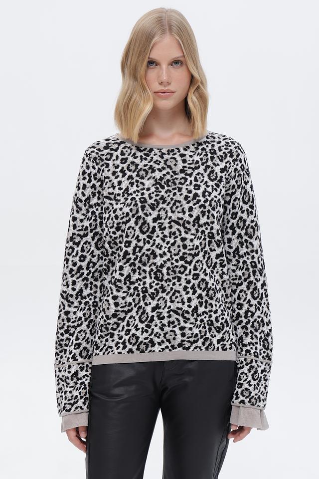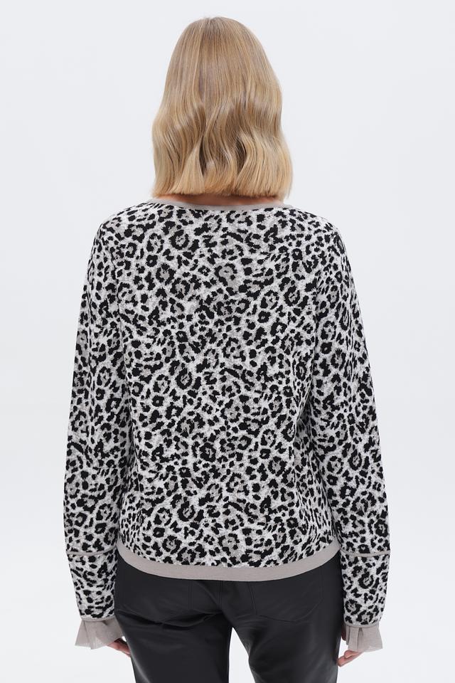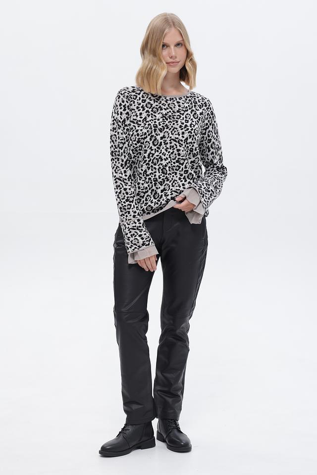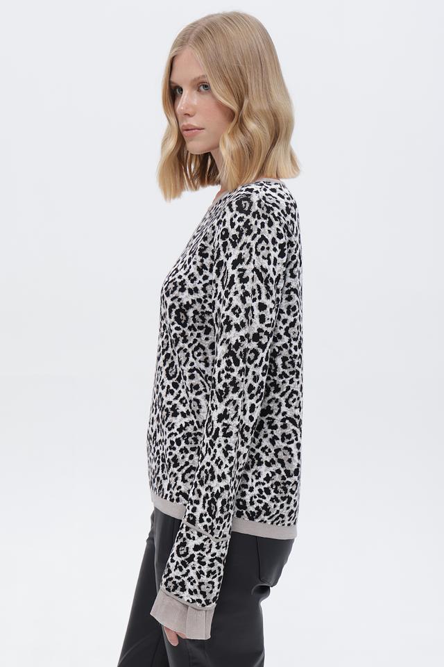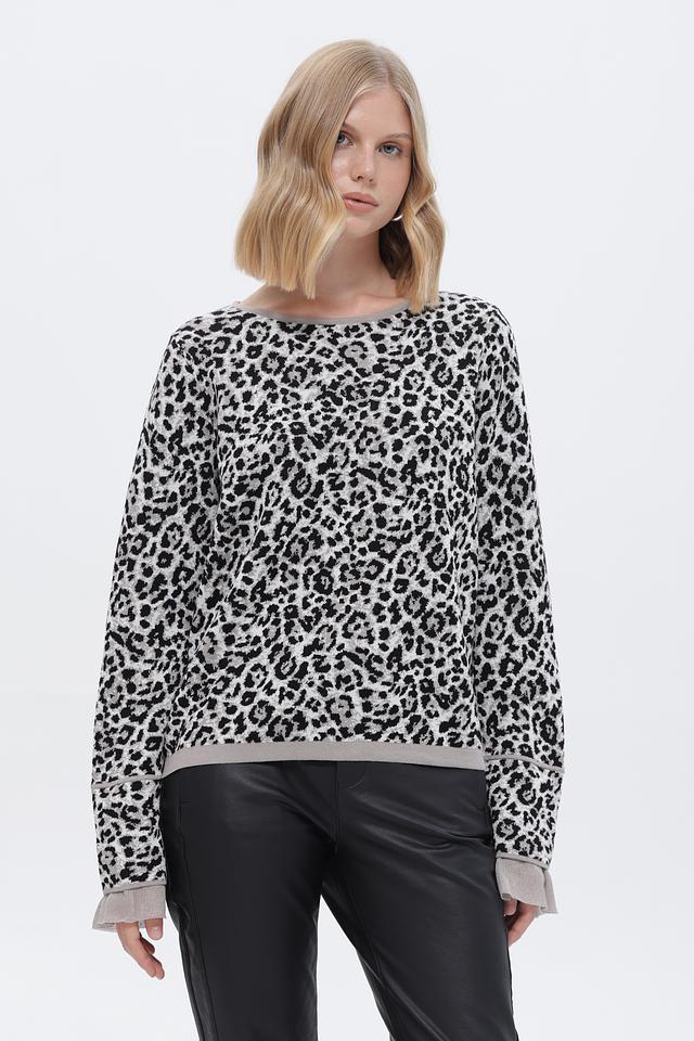 Пуловер имеет свободный крой, который не сковывает движения и обеспечивает комфорт в носке. Дизайн модели украшен модным леопардовым принтом, который добавит вашему образу индивидуальности.