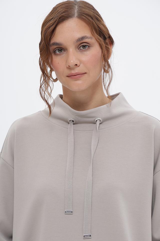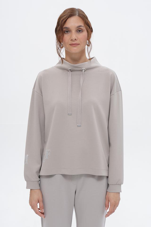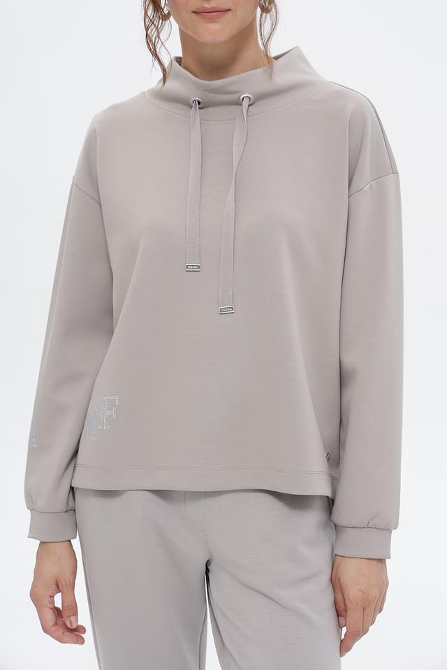 Стильный пуловер Monari светло-серого цвета с капюшоном на шнурках станет отличным дополнением к вашему гардеробу. Модель выполнена из мягкого и приятного к телу трикотажа, обеспечивающего комфорт в течение дня. Состав: полиэстер 55%, вискоза 38%, эластан 7%