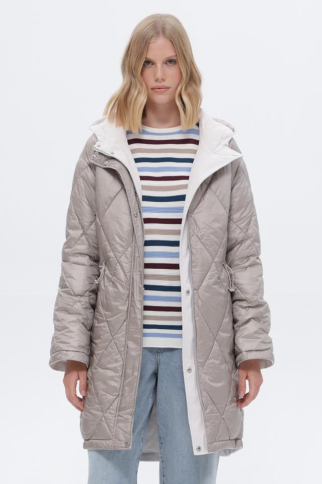 Стеганая куртка Monari серого цвета — практичное и стильное решение для прохладной погоды. Модель выполнена из полиэстера, имеет удобный капюшон и функциональные карманы. Отличный выбор для создания повседневных образов. Состав: полиэстер 100%
