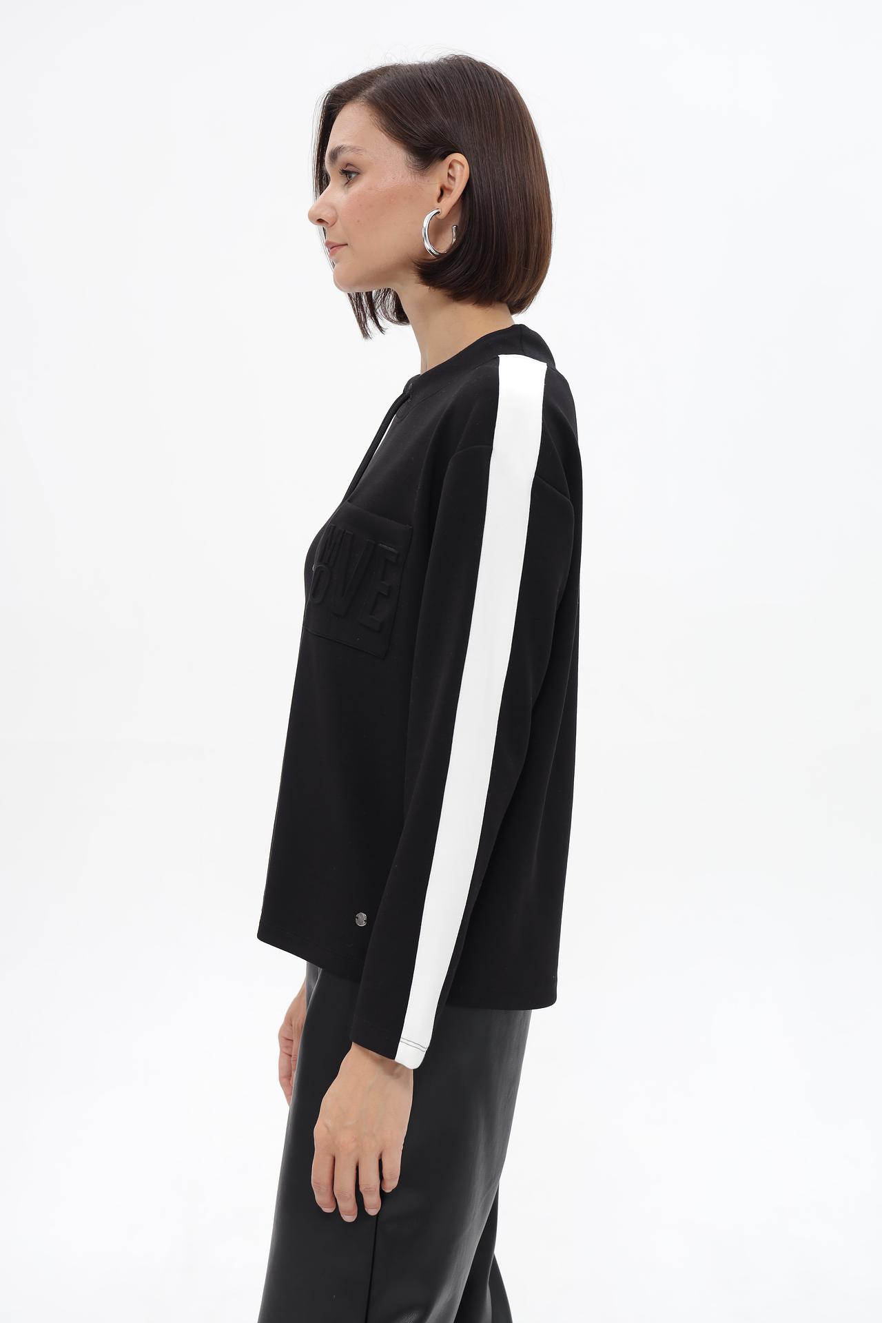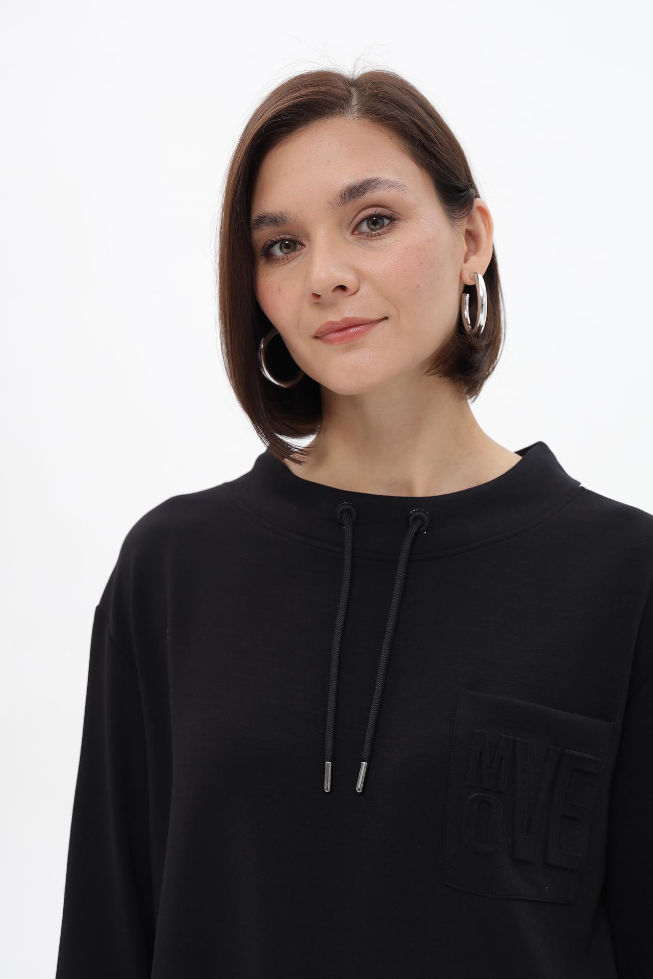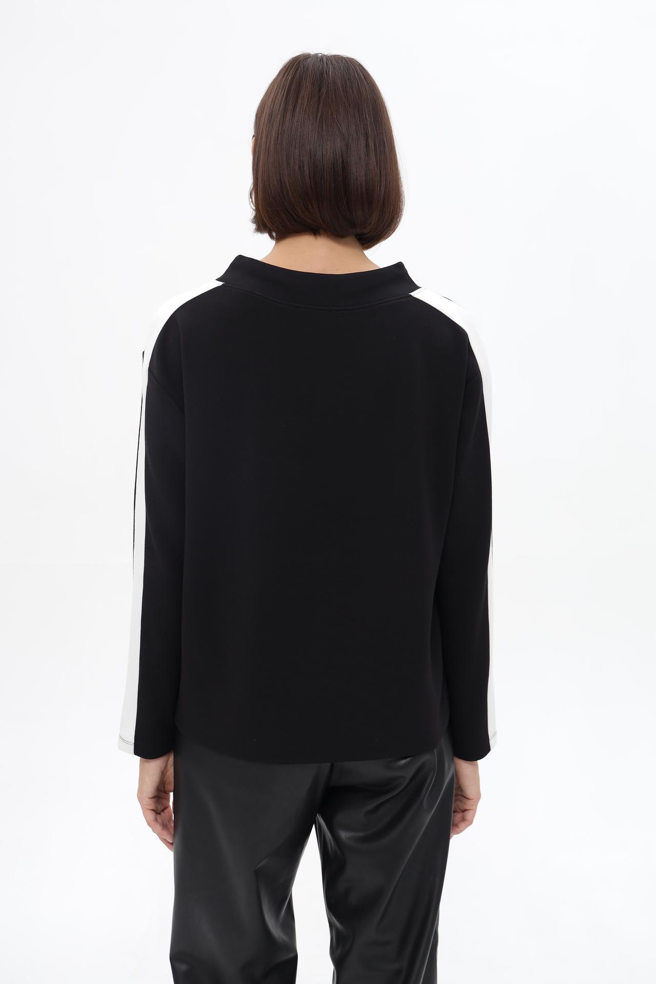 Элегантный пуловер от Monari — идеальное дополнение к вашему повседневному гардеробу. Изделие выполнено в классическом чёрном цвете с контрастной белой полосой на рукавах, что придает ему особый шарм и динамичность. Модель с высоким воротом и удобным карманом на груди обеспечивает комфорт и стиль.