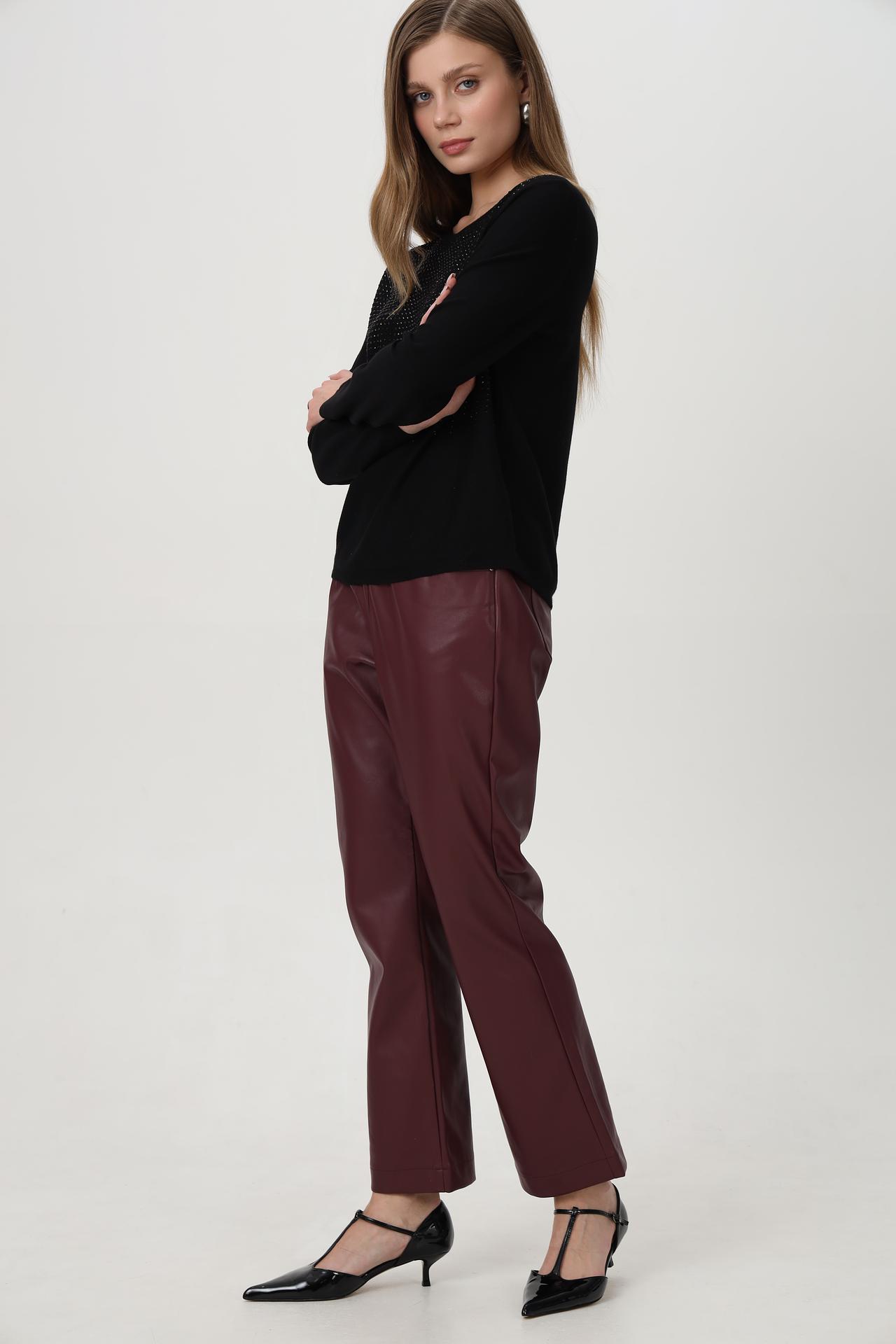 - Цвет: Глубокий бордовый оттенок. Цвет брюк придает образу роскоши и изысканности, легко сочетается с различными цветами одежды.