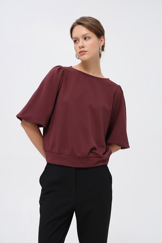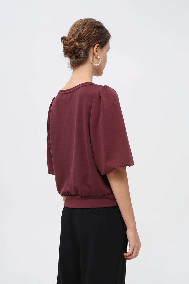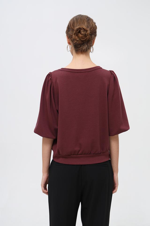 Представляем стильный бордовый пуловер от бренда Monari. Эта модель с короткими рукавами-фонариками станет прекрасным дополнением к вашему гардеробу.