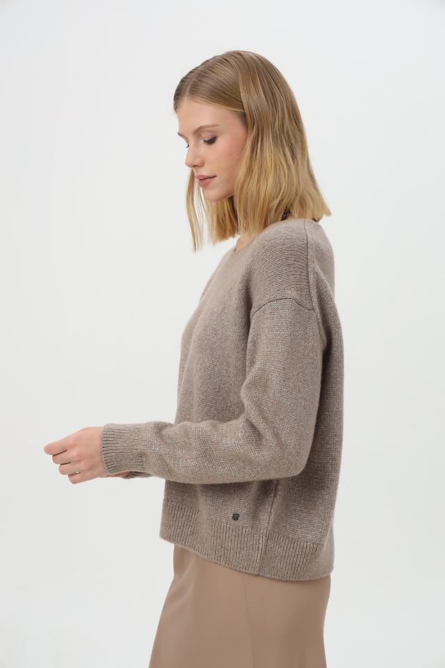 Бежевый пуловер Monari из мягкой пряжи с округлым вырезом горловины станет отличным дополнением к вашему гардеробу. Свободный крой и деликатная текстура делают этот пуловер комфортным и стильным. Состав: шерсть 55%, метализ.полиэстер 23%, полиамид 22%