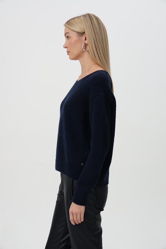 Стильный пуловер Monari синего цвета с округлым вырезом горловины. Изготовлен из мягкой шерсти с добавлением полиамида для долговечности. Идеальный выбор для создания комфортного и элегантного образа. Состав: шерсть 75%, полиамид 25%