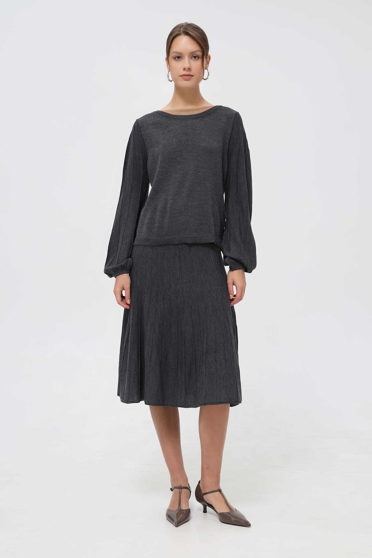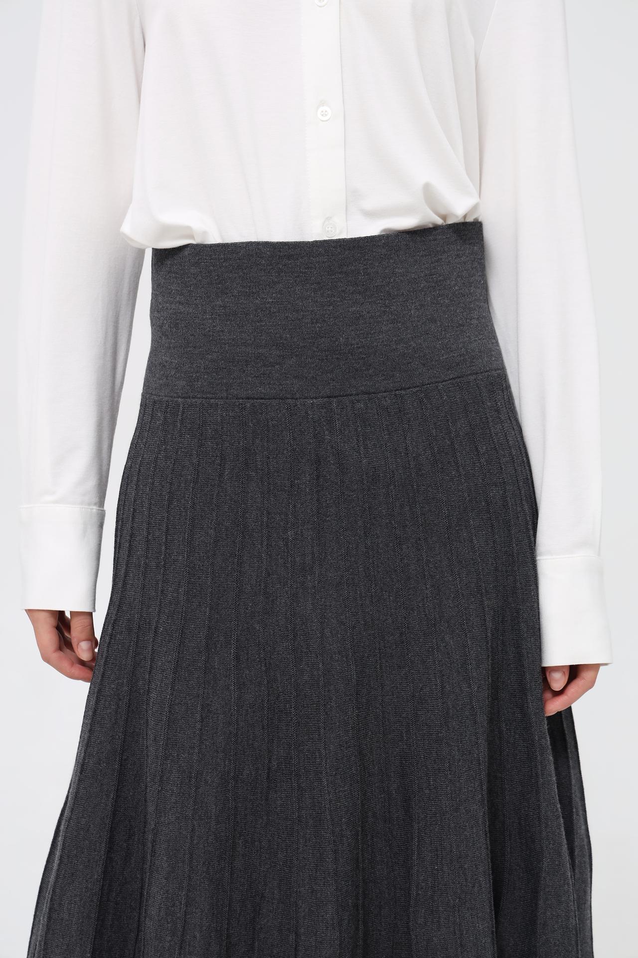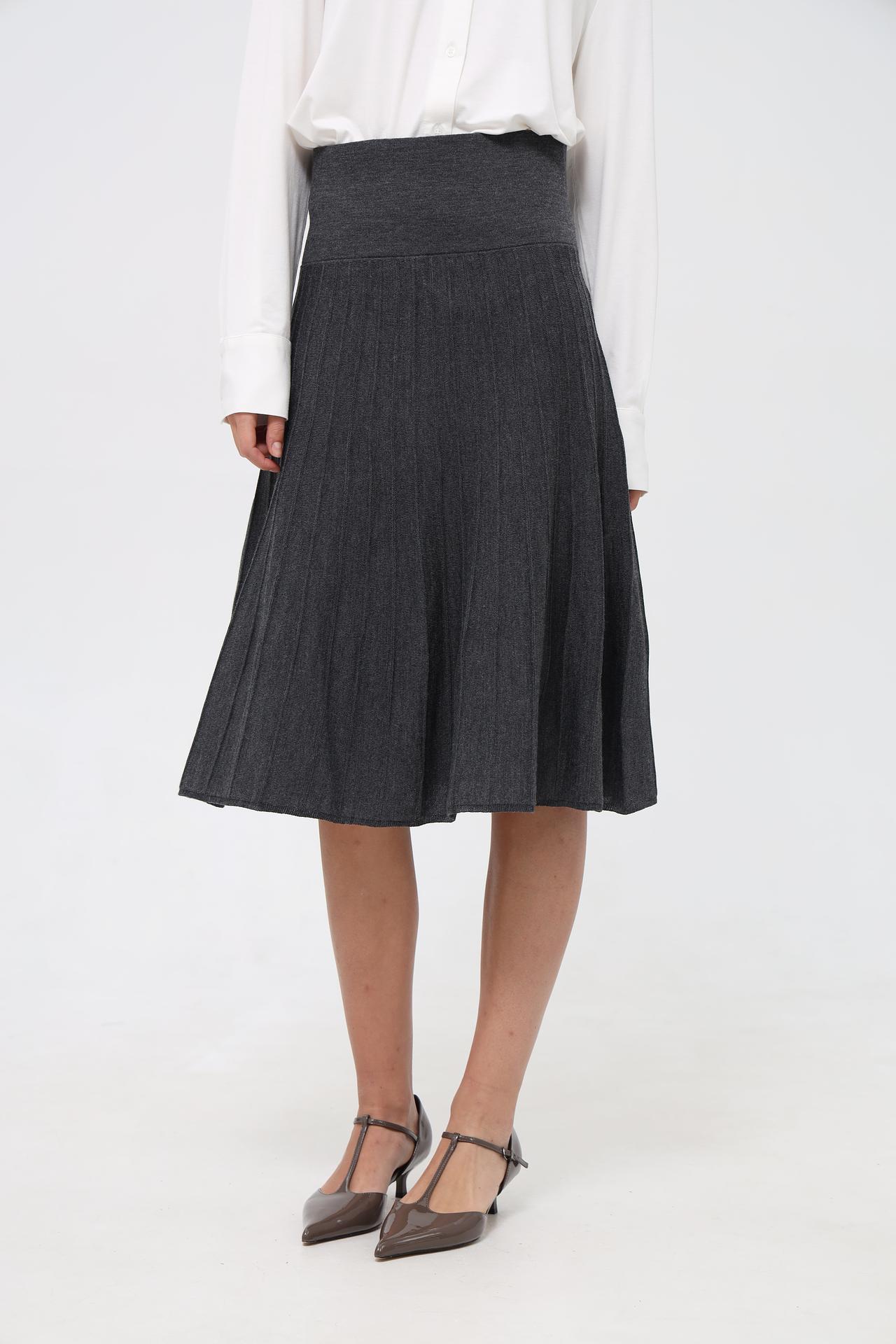 - Крой: Юбка имеет универсальную длину миди и слегка расклешенный силуэт, который выгодно подчеркивает фигуру.