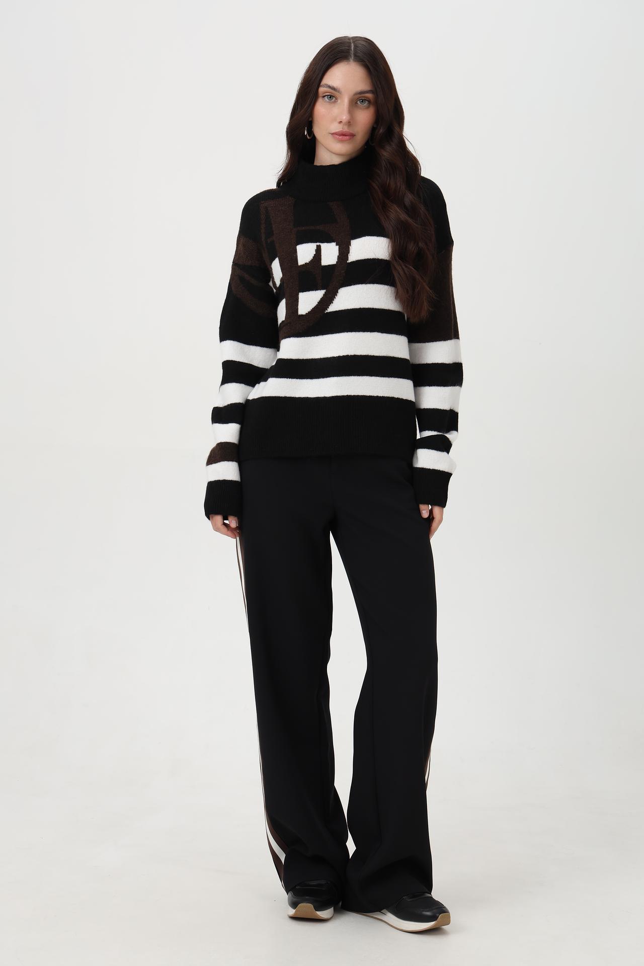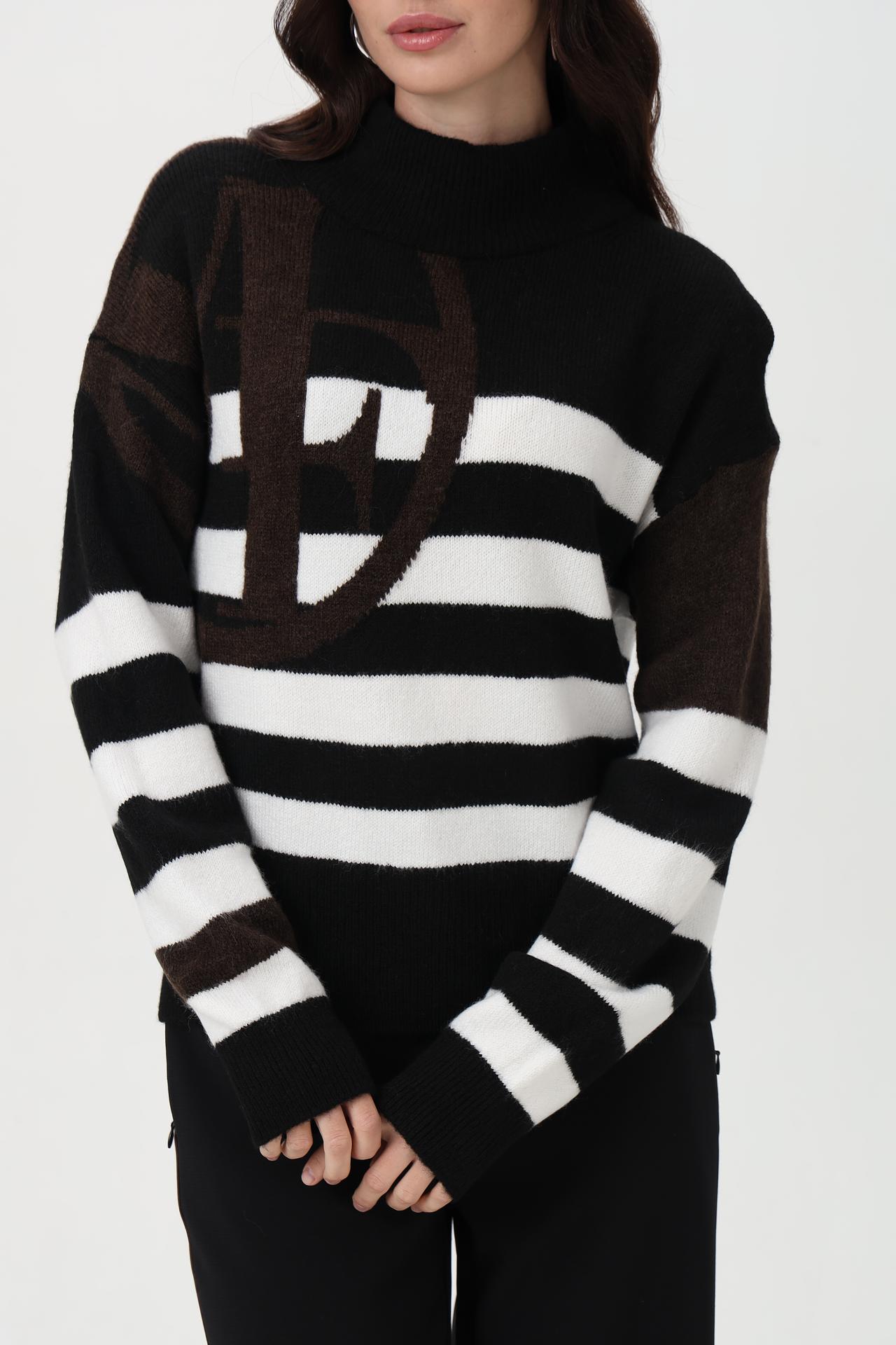Пуловер Monari женский чёрно-белый в полоску с логотипом