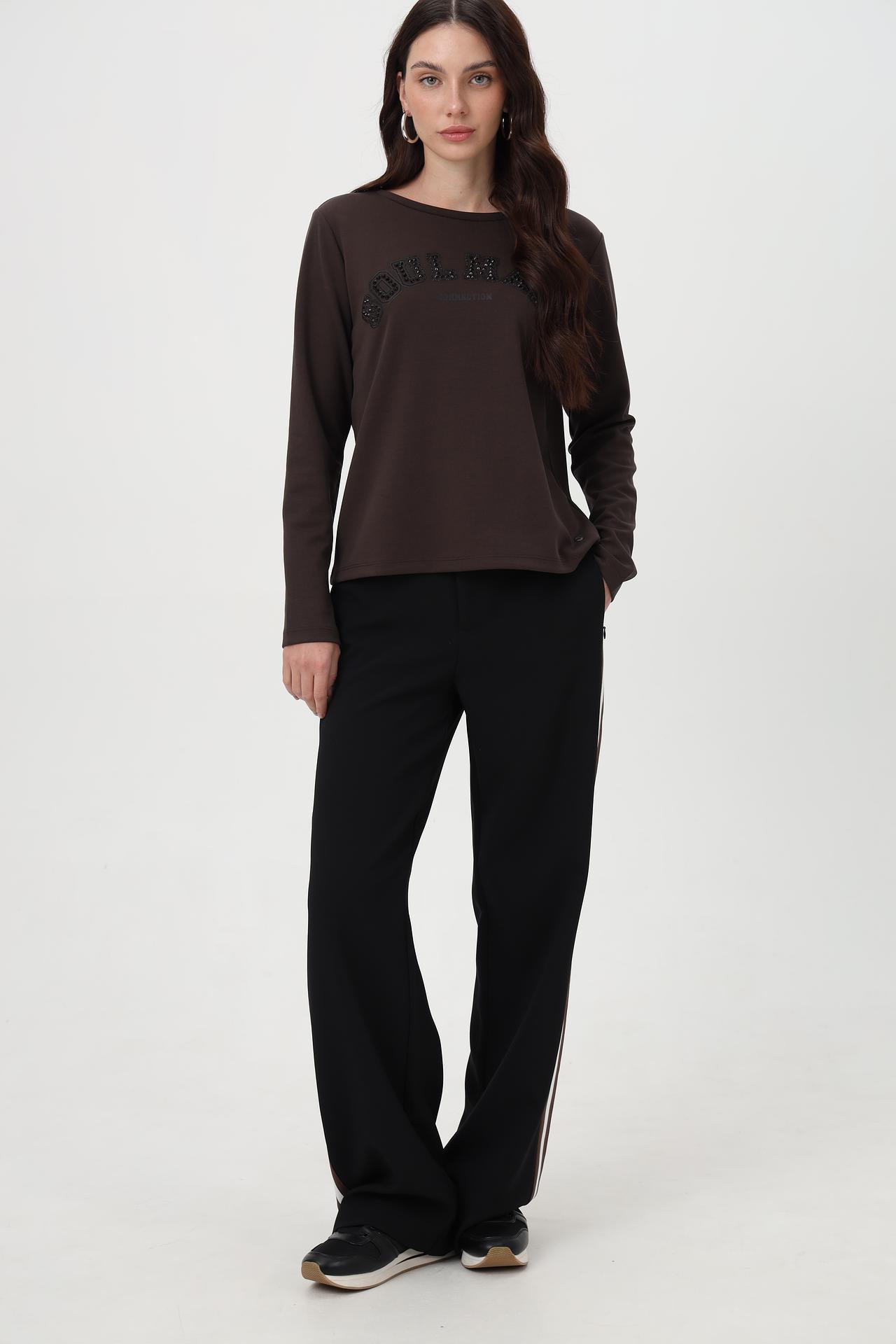 Брюки Monari – это сочетание элегантности и комфорта, идеально подходящее для создания стильных образов на каждый день. Классический черный цвет и прямой крой визуально удлиняют ноги, делая силуэт более стройным. Декоративные лампасы по бокам добавляют динамики и актуальности.