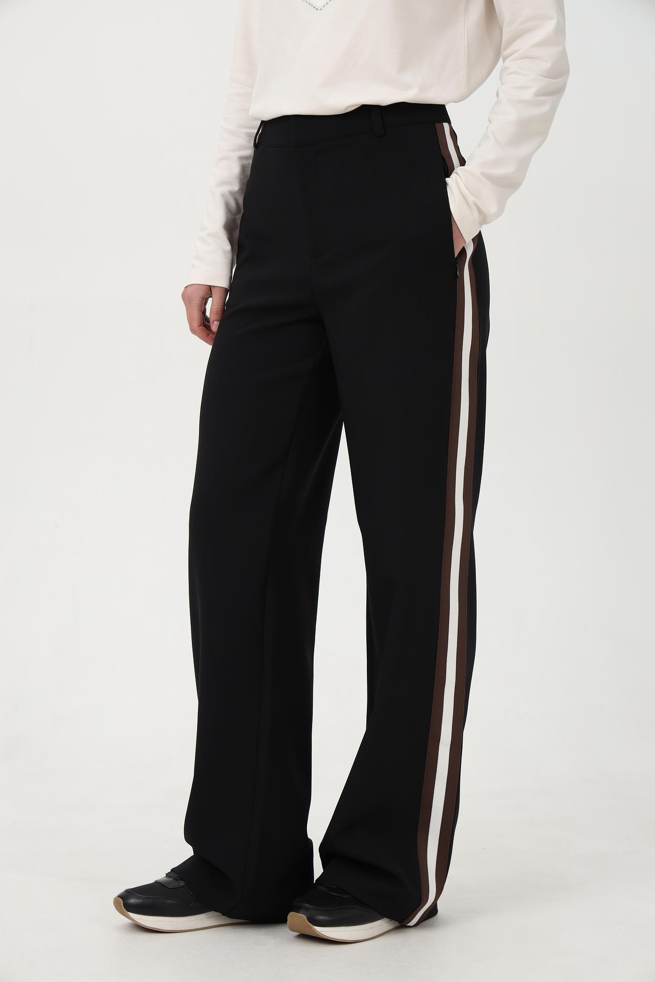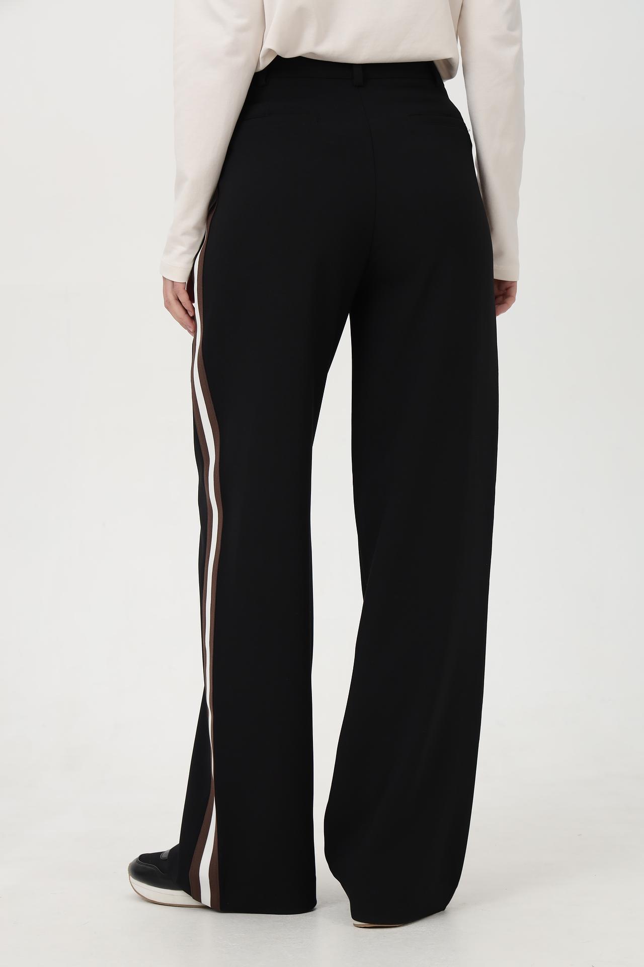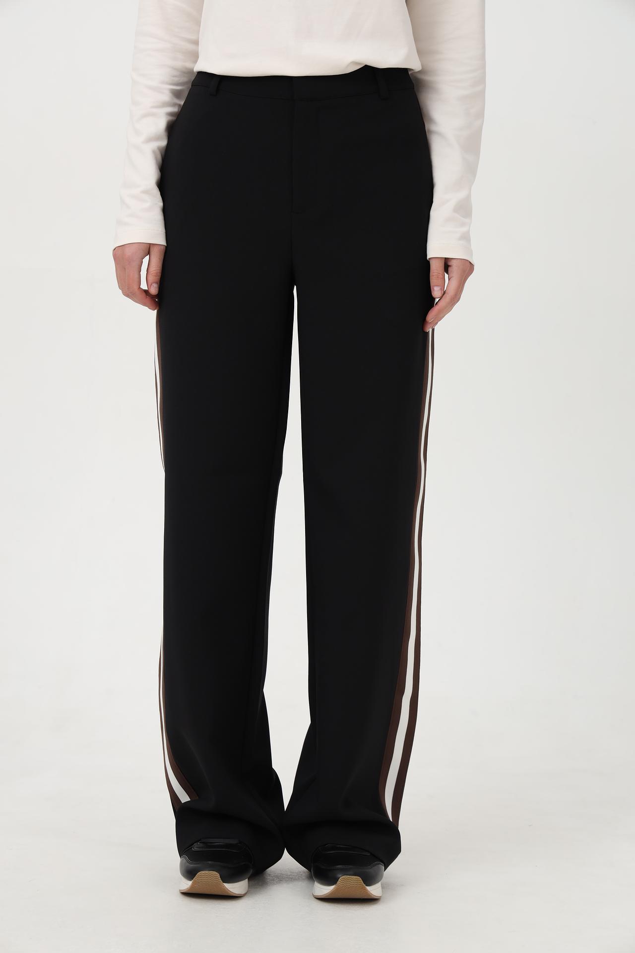 - Детали: Контрастные лампасы из белой и коричневой полос по бокам брюк придают модели современный вид и спортивный акцент.