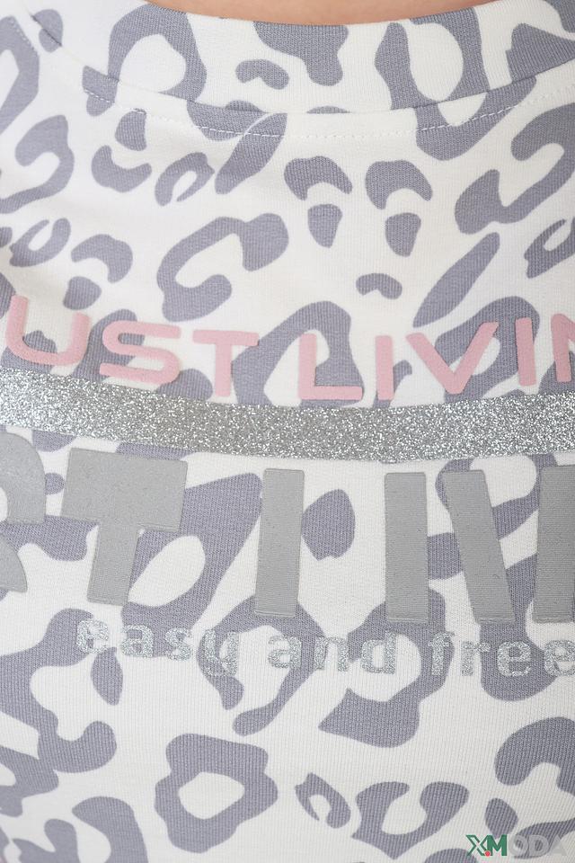 Женская футболка Monari белого цвета с оригинальным леопардовым принтом и декоративной отделкой. Модель выполнена из мягкого и приятного к телу трикотажа, обеспечивающего комфорт в носке. Состав: хлопок 60%, модал 30%, эластан 10%