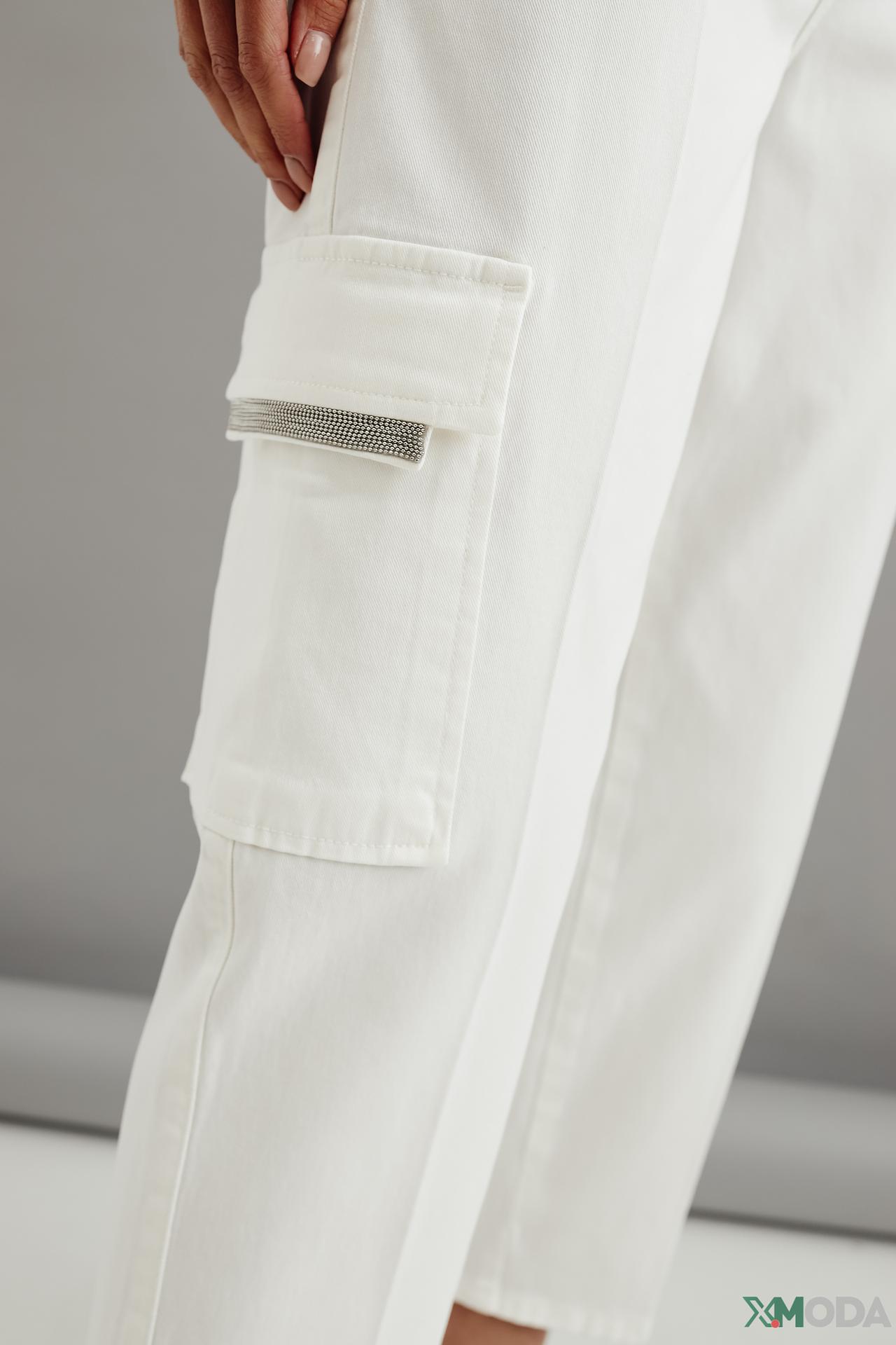 Джинсы Monari белые с карманами карго и поясом