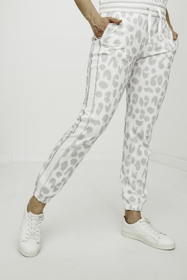 Эти брюки от Monari станут ярким акцентом в вашем гардеробе. Модель выполнена в белом цвете и украшена эффектным леопардовым принтом, который придает образу динамичность и индивидуальность.