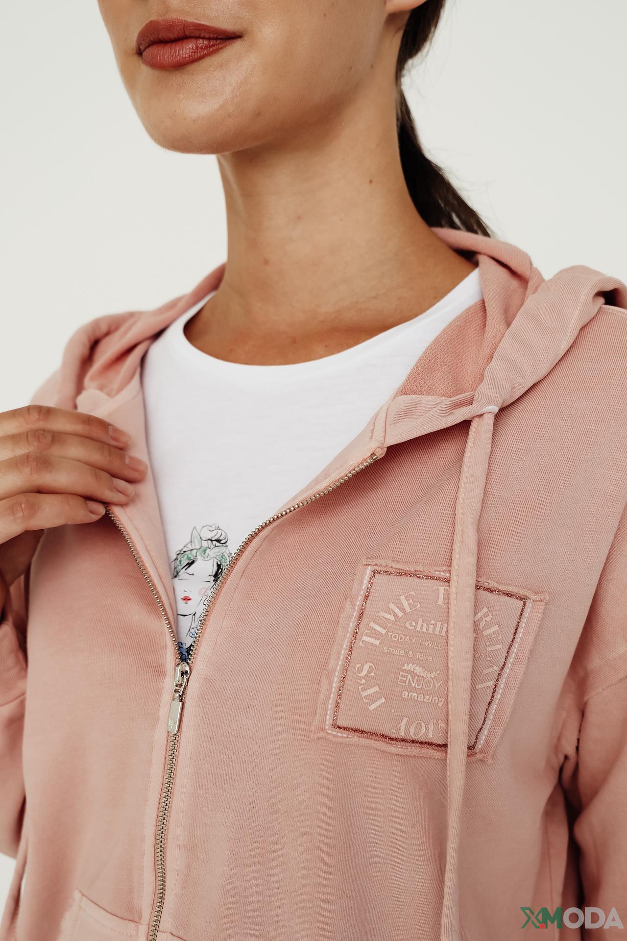 Стильный и комфортный жакет на молнии от Monari – идеальное решение для создания непринужденного образа. Выполненный из мягкого и приятного на ощупь материала (70% хлопок, 30% полиэстер), этот жакет обеспечит вам тепло и уют в прохладную погоду. Пудровый оттенок придает изделию нежность и женственность, а удобный капюшон и карманы добавляют функциональности.