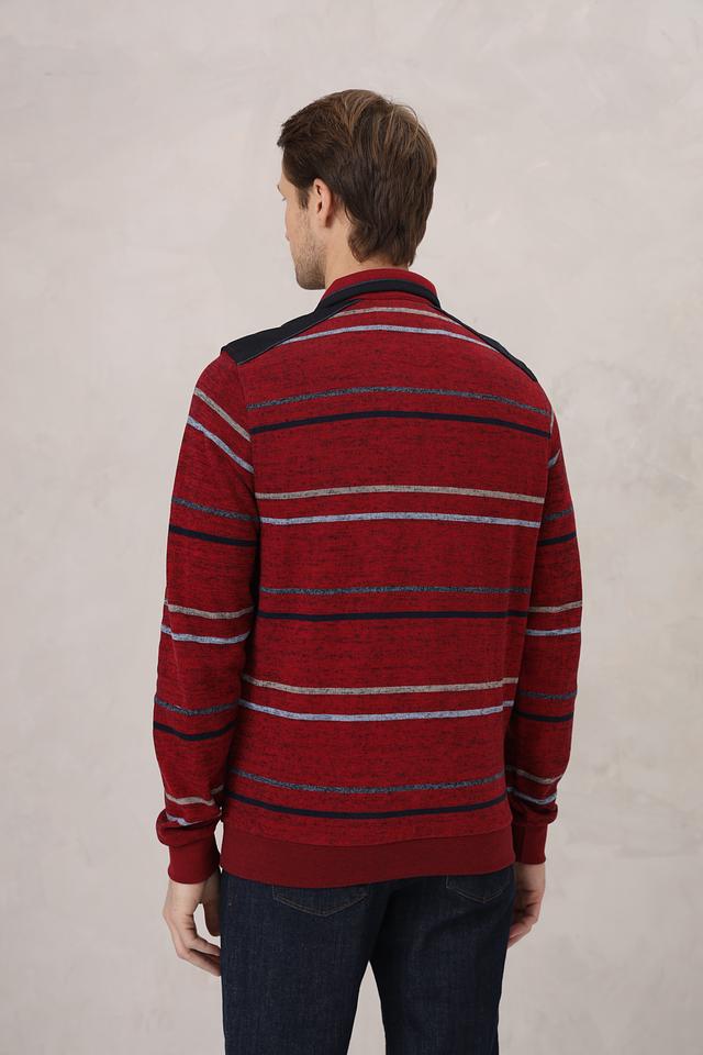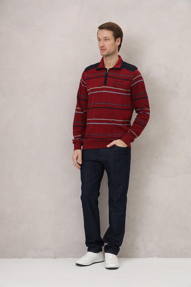 Мужской джемпер Monte Carlo бордового цвета с полосатым узором и воротником-стойкой на молнии. Изготовлен из 100% хлопка, обеспечивающего комфорт и удобство в носке. Состав: хлопок 100%