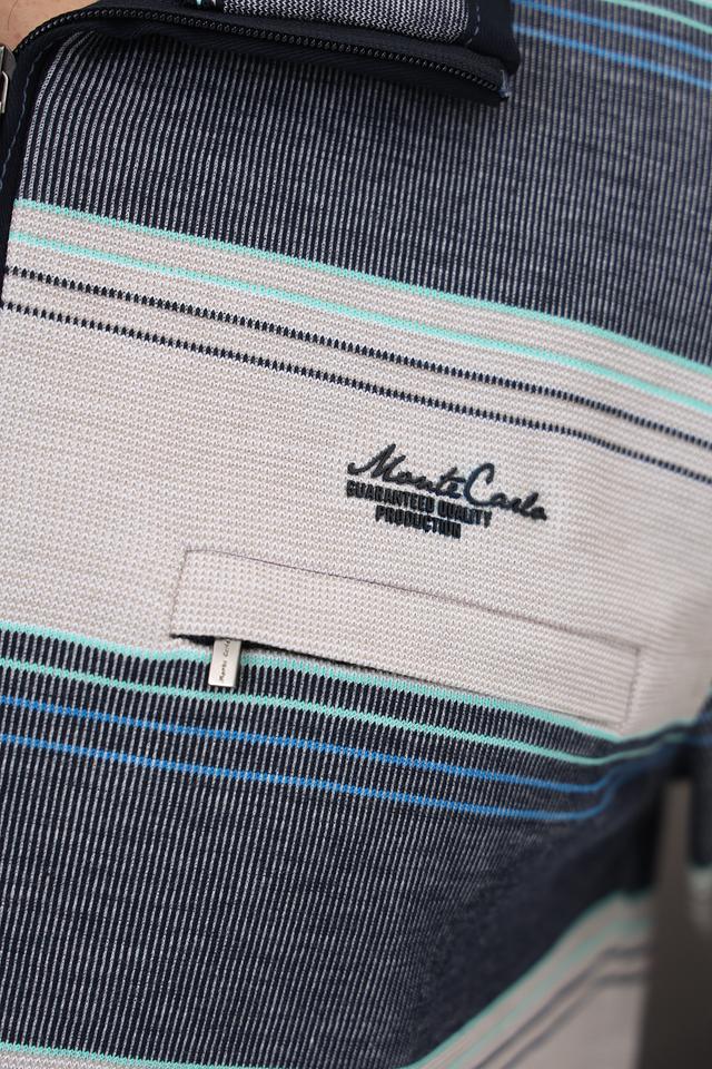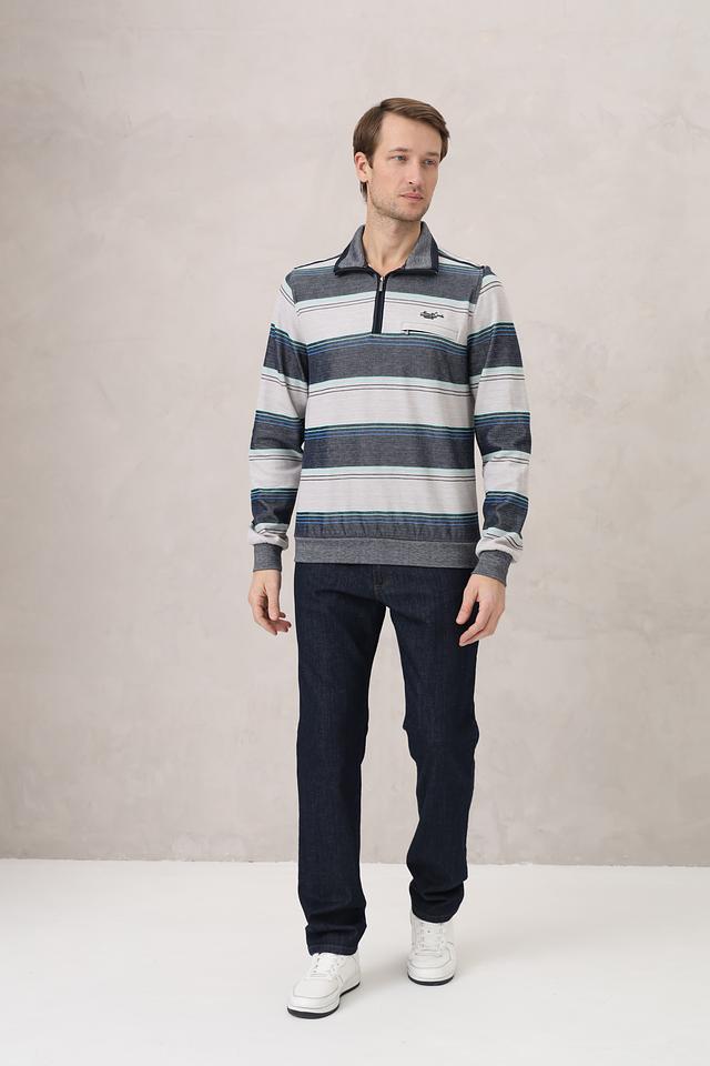 Мужской джемпер Monte Carlo серого цвета с полосатым узором и короткой молнией на воротнике. Изготовлен из 100% хлопка, обеспечивающего комфорт и удобство в носке. Состав: хлопок 100%