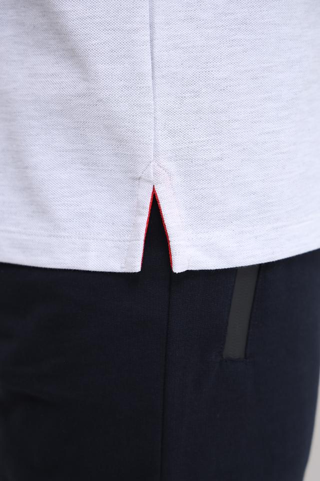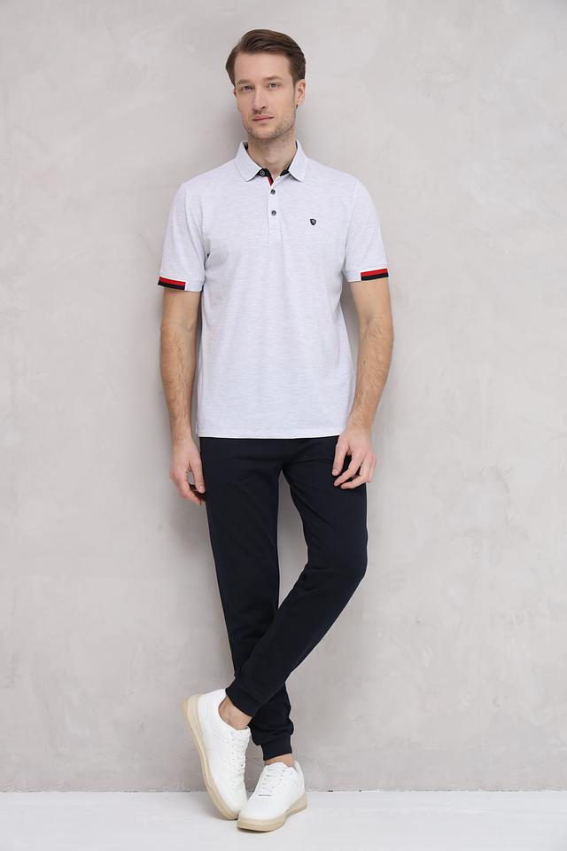 Стильное мужское поло Monte Carlo серого меланжа с контрастной красной отделкой на воротнике и рукавах. Изготовлено из комфортного сочетания хлопка, полиэстера и эластана, обеспечивающего удобную посадку и долговечность. Состав: хлопок 65%, полиэстер 30%, эластан 5%