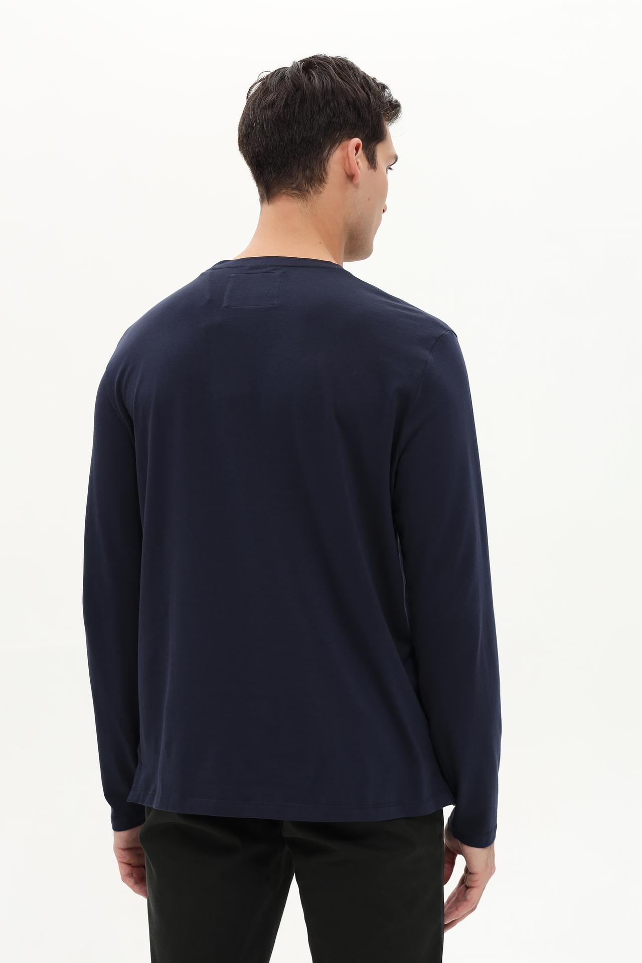 Классический крой лонгслива идеально подходит для создания повседневных образов. Синий цвет делает его универсальным, легко сочетающимся с различными элементами гардероба.