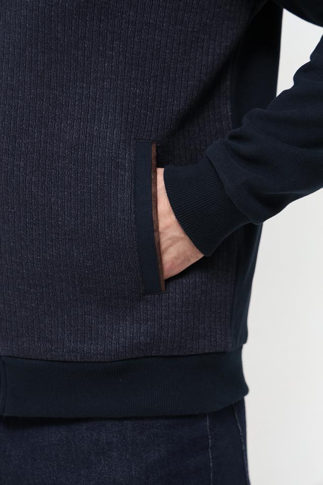 Кардиган имеет удобную застёжку на молнии, что позволяет легко регулировать степень тепла. Передняя часть и рукава выполнены из гладкого трикотажа, а центральная часть – из текстурного вязаного полотна, что добавляет изделию визуальный интерес.