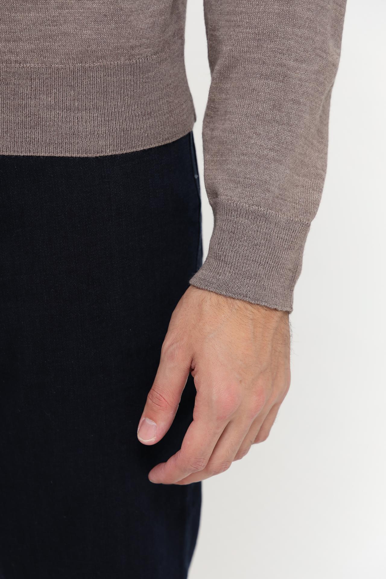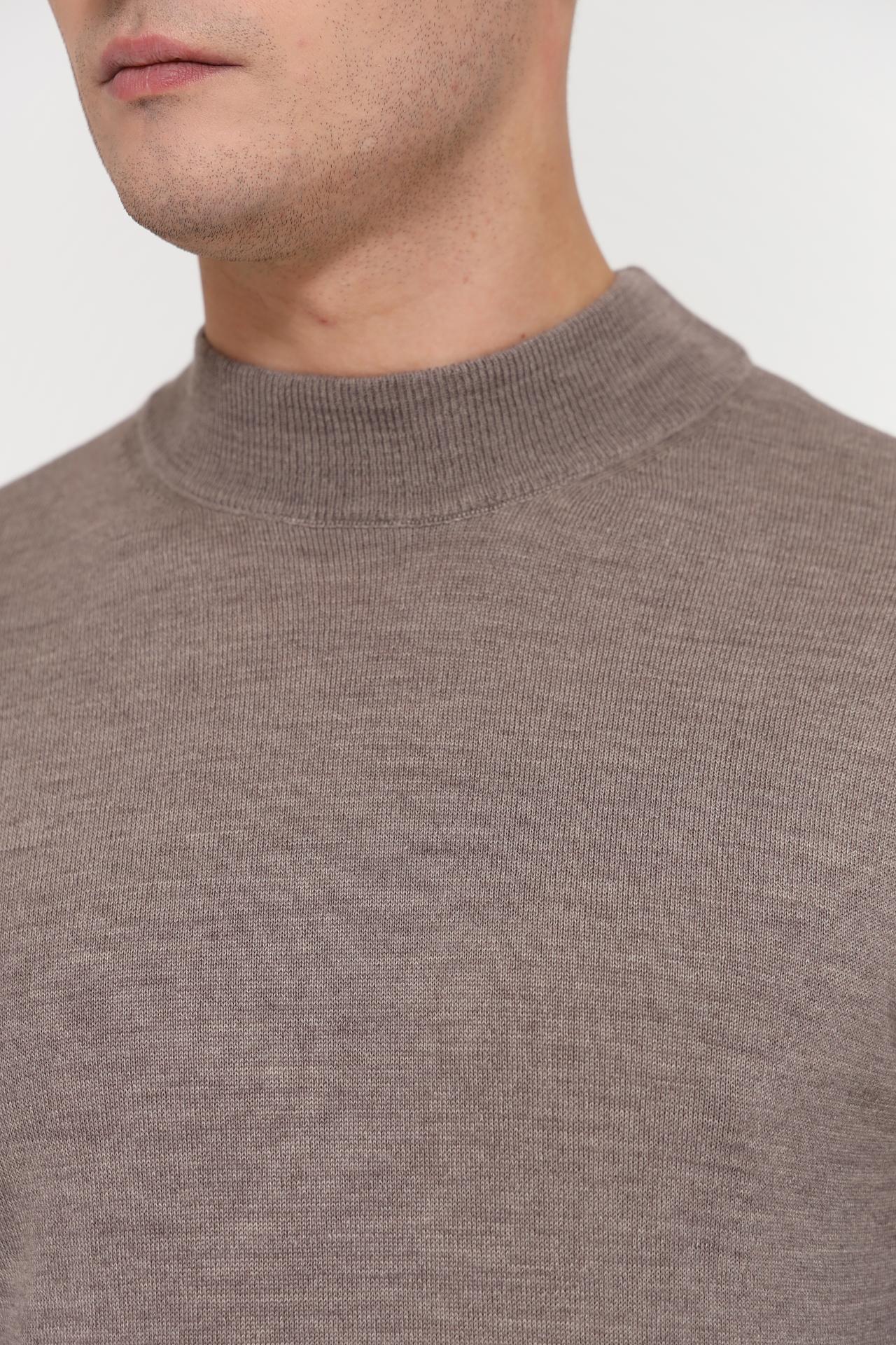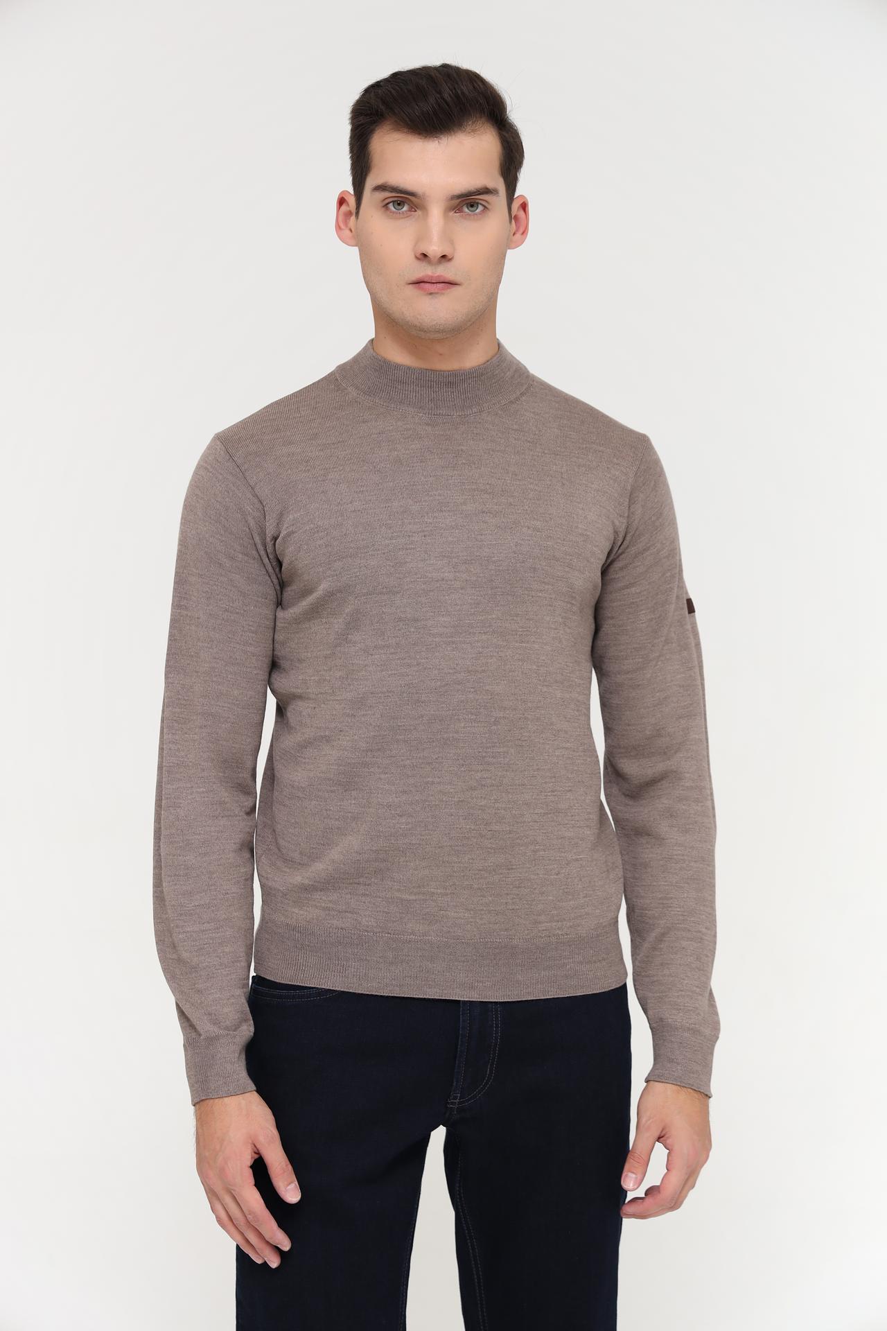 - Детали: Коричневый джемпер с высоким воротником и нашивкой на рукаве, что придает изделию завершенный вид.