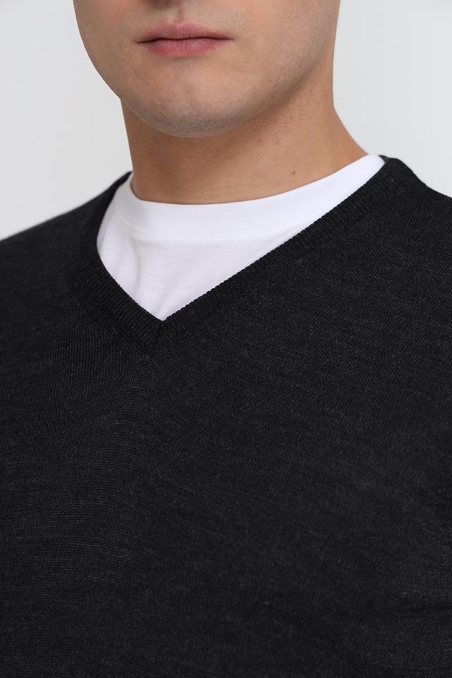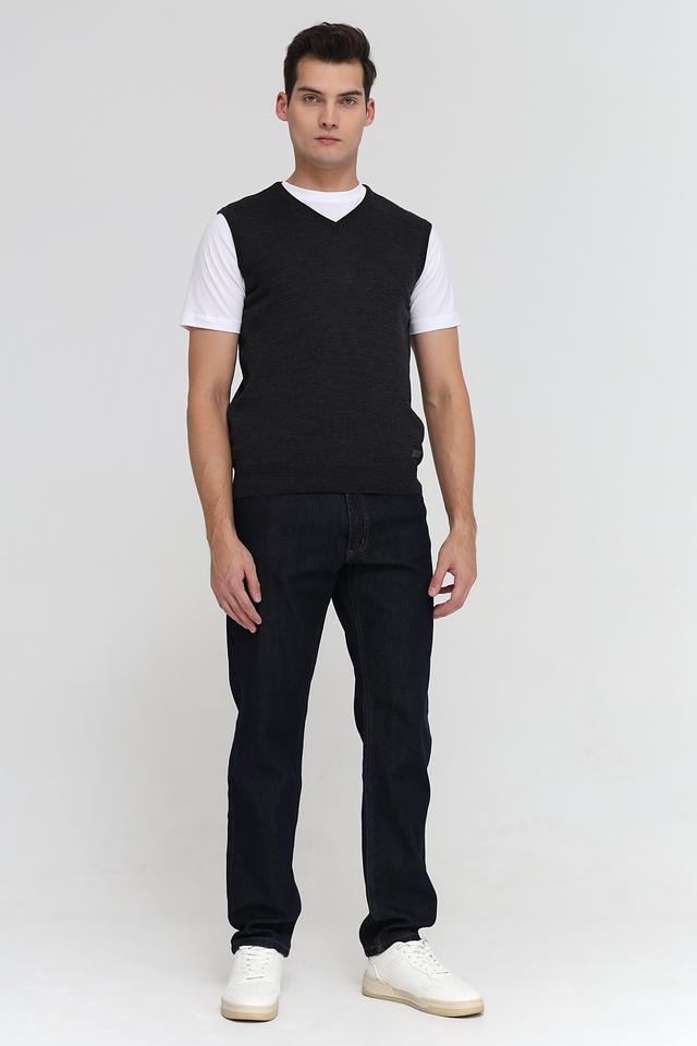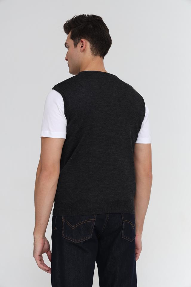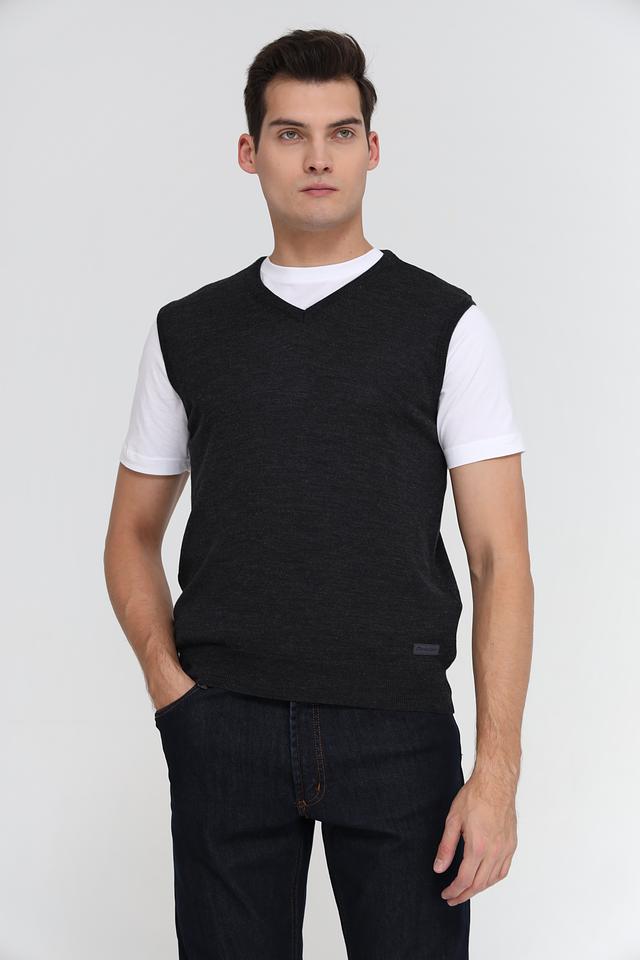 Жилет имеет классический V-образный вырез и прямой крой, который хорошо сочетается с различными стилями одежды. Цвет жилета – серый, меланжевый, что делает его универсальным и легко сочетаемым с другими элементами гардероба.