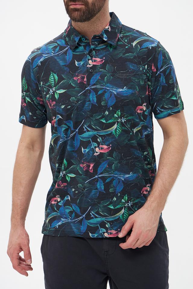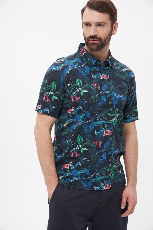 Мужское поло Monte Carlo тёмно-синего цвета с ярким тропическим принтом станет стильным дополнением к вашему гардеробу. Изготовлено из 100% хлопка, обеспечивающего комфорт и воздухопроницаемость. Состав: хлопок 100%