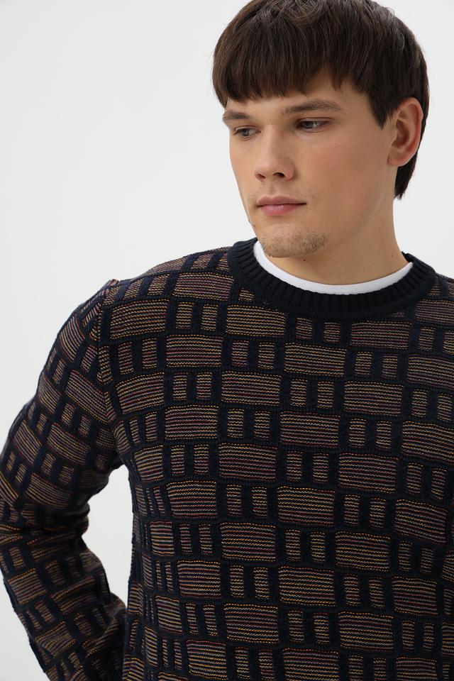 Мужской джемпер Monte Carlo тёмно-синего цвета с геометрическим узором. Изготовлен из мягкого и приятного к телу сочетания хлопка и полиакрила. Состав: хлопок 50%, полиакрил 50%