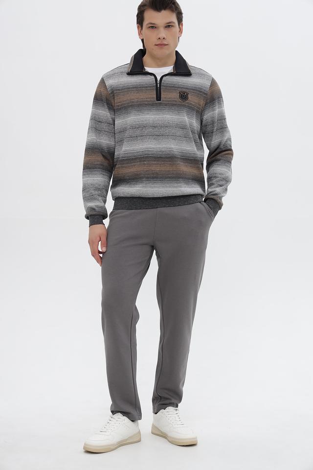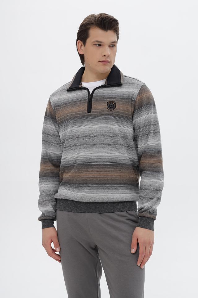 Мужской джемпер Monte Carlo серого цвета с полосатым узором и молнией на горловине. Изготовлен из хлопка с добавлением полиэстера для комфорта и долговечности. Состав: хлопок 80%, полиэстер 20%