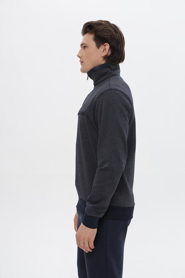 Джемпер имеет удобную полукруглую горловину с короткой молнией, что позволяет регулировать степень защиты от холода. На груди расположен накладной карман с логотипом бренда. Манжеты и нижний край джемпера выполнены из эластичной резинки контрастного темно-синего цвета.