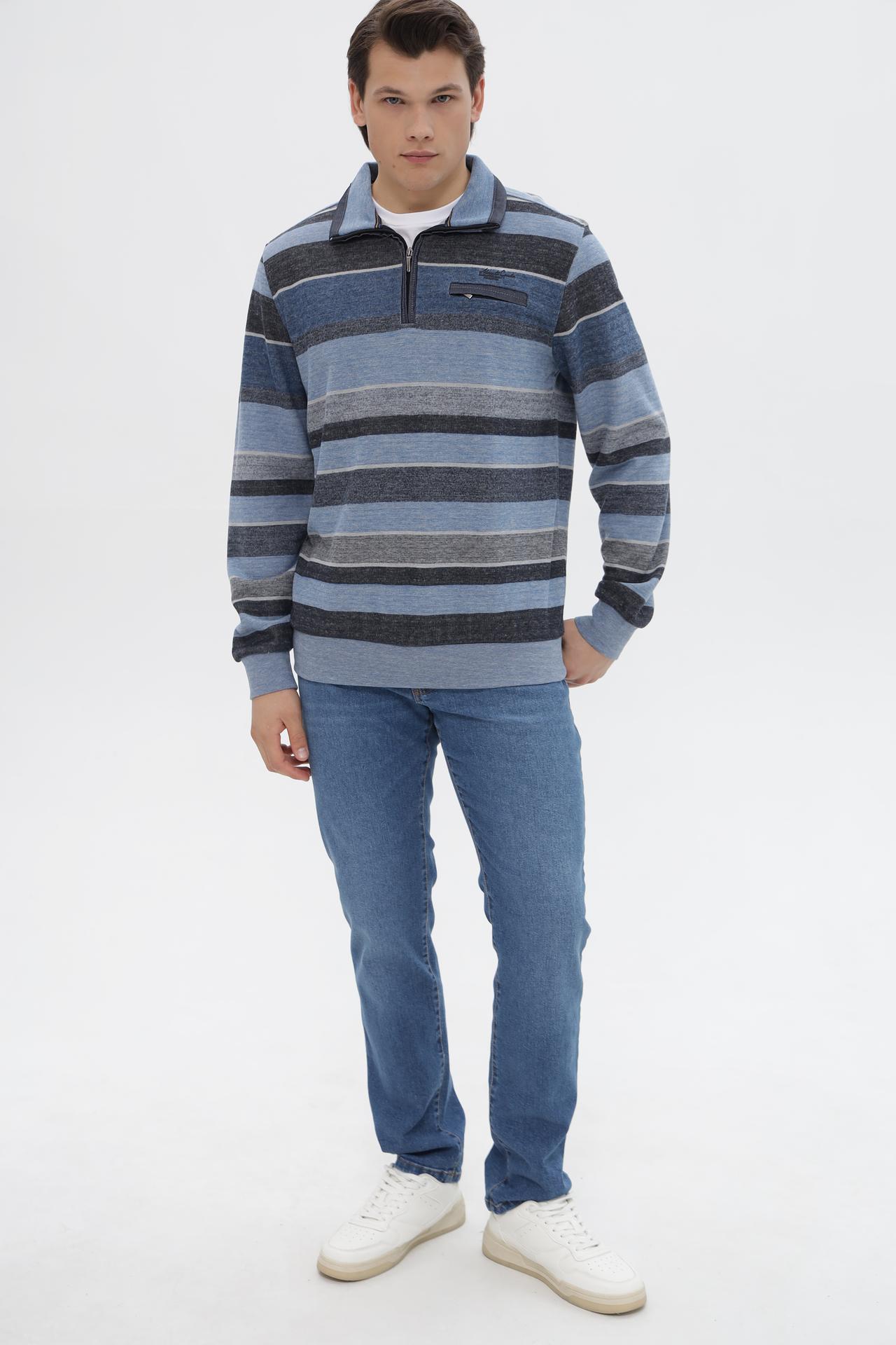 Стильный мужской пуловер Monte Carlo в сине-серую полоску – идеальный выбор для создания комфортных и модных образов.