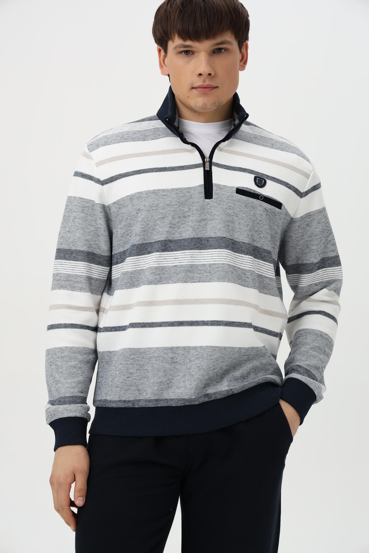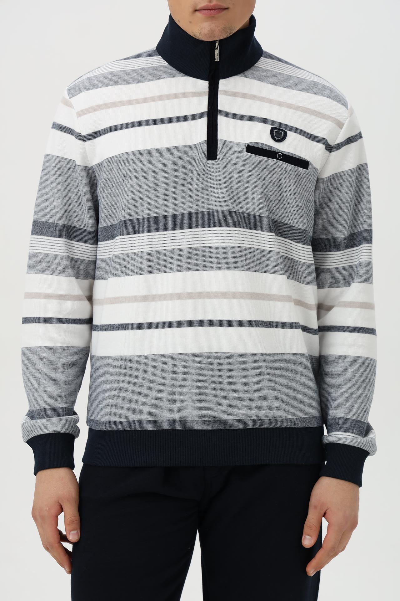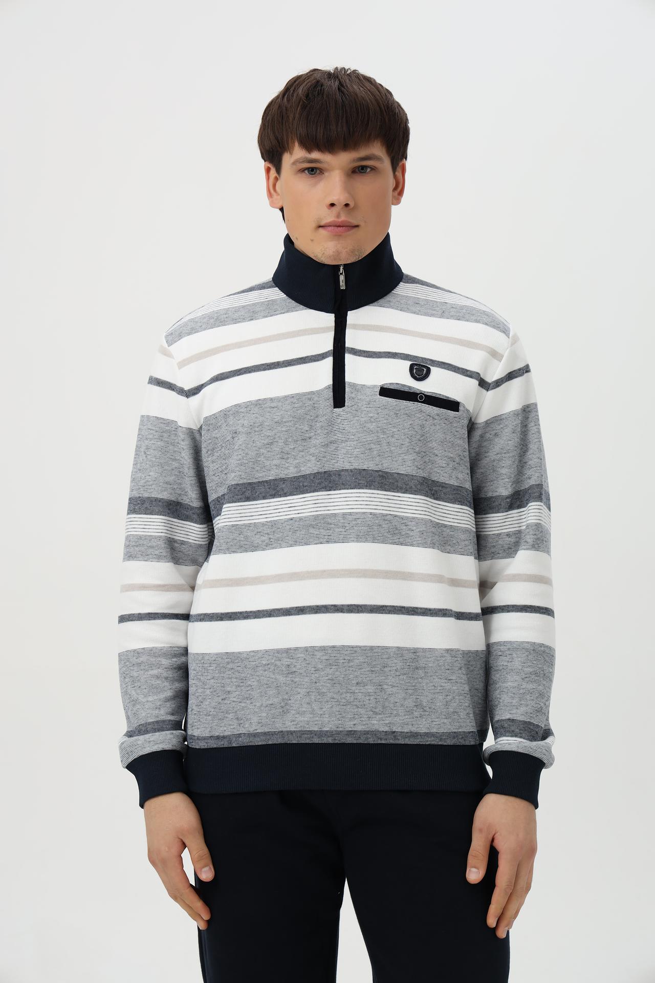Классический джемпер от Monte Carlo – идеальный выбор для создания стильных и комфортных образов. Модель выполнена в эффектную горизонтальную полоску, сочетающую оттенки серого, белого и бежевого, что придает ей динамичность и актуальность.