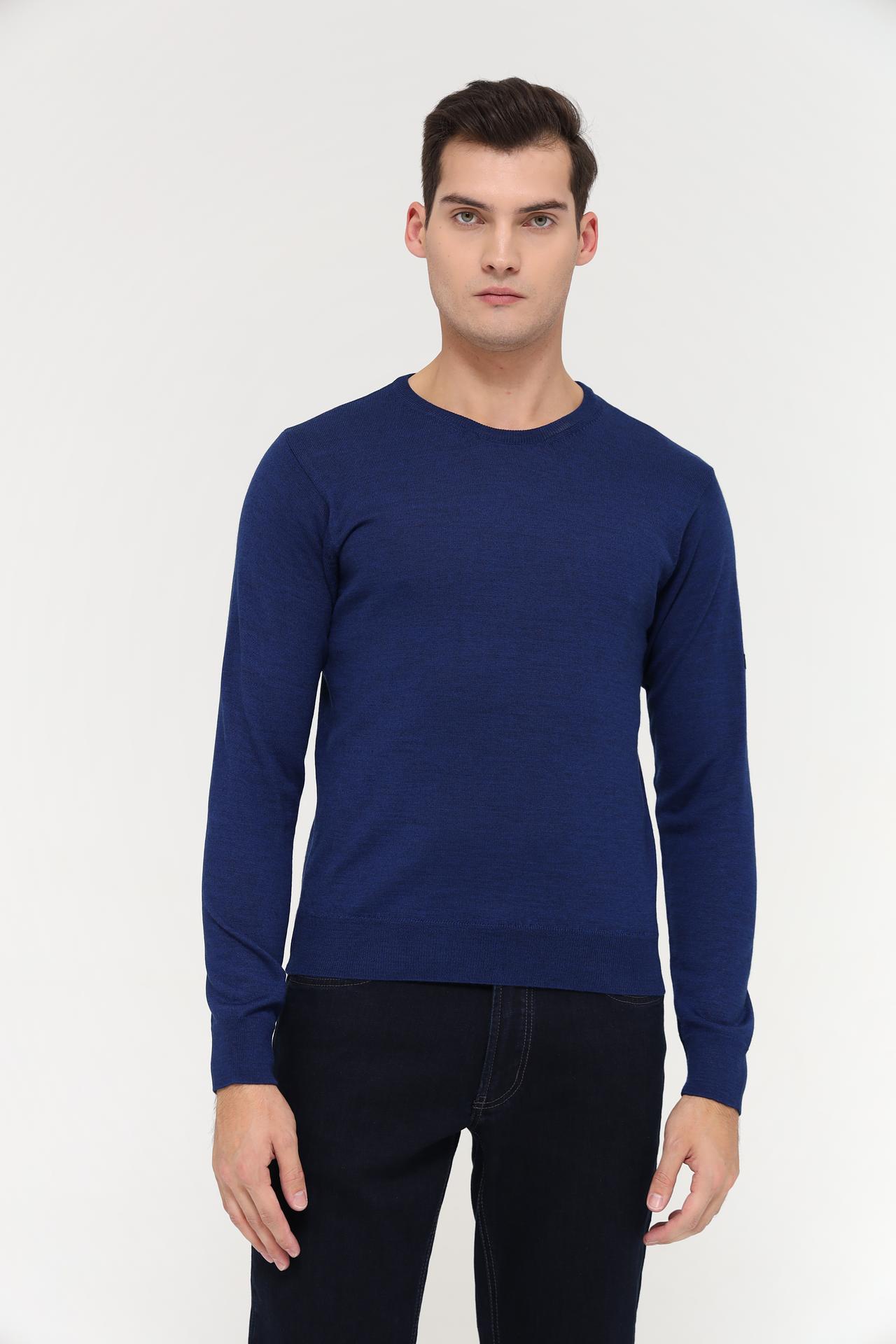 Мужской пуловер Monte Carlo синий с нашивкой на рукаве