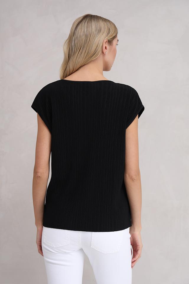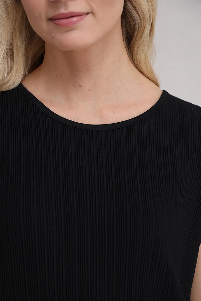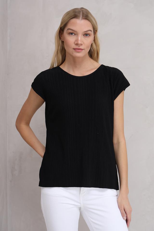 Чёрная футболка от MORE and MORE из 100% полиэстера. Модель с коротким рукавом и круглым вырезом горловины, имеет текстурированную поверхность. Идеально подходит для создания повседневных образов. Состав: полиэстер 100%