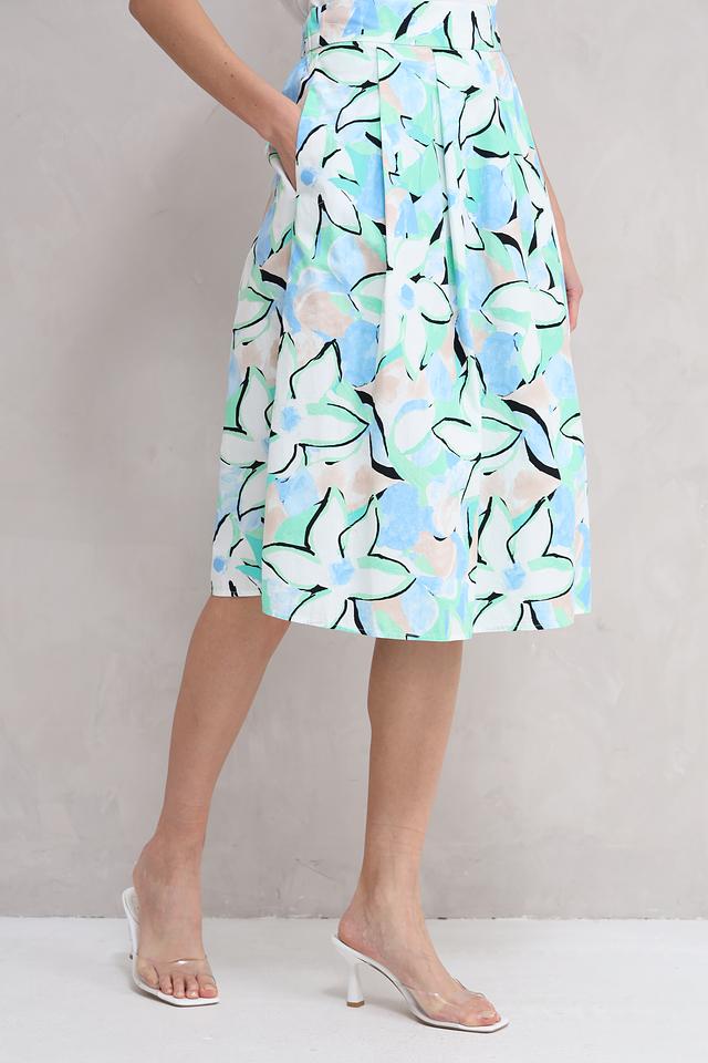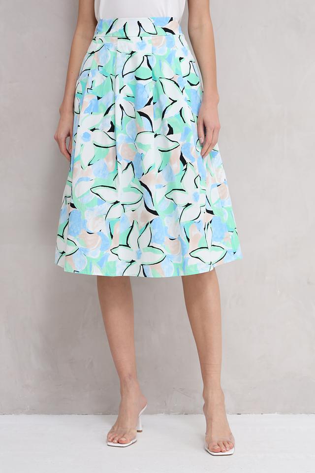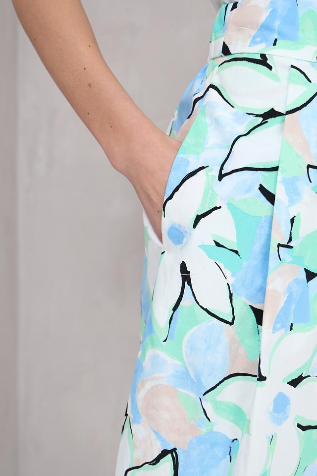 Юбка имеет длину миди и полусолнцевидный крой, который придает ей элегантность и легкость. Особенностью модели является яркий цветочный принт, выполненный в нежных пастельных тонах. Такой рисунок добавит образу свежести и оригинальности.