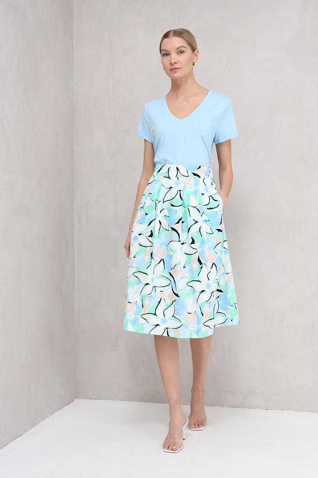 Юбка More and More светло-голубого цвета с оригинальным цветочным принтом станет ярким акцентом вашего образа. Модель выполнена из натурального хлопка, обеспечивая комфорт и легкость в носке. Состав: хлопок 100%
