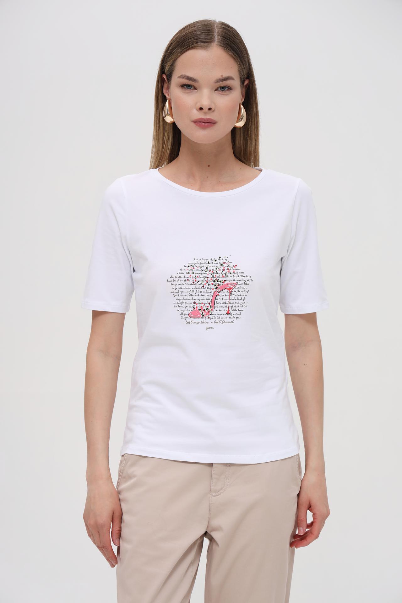 Футболка MORE and MORE белая с принтом туфель и текстом
