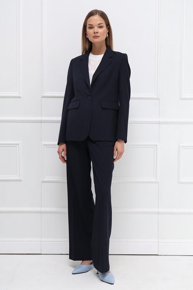 Жакет More and More темно-синего цвета в тонкую полоску – стильное и универсальное решение для создания делового или повседневного образа. Классический крой и лаконичный дизайн делают этот жакет незаменимым элементом гардероба. Состав: полиэстер 63%, вискоза 32%, эластан 5%