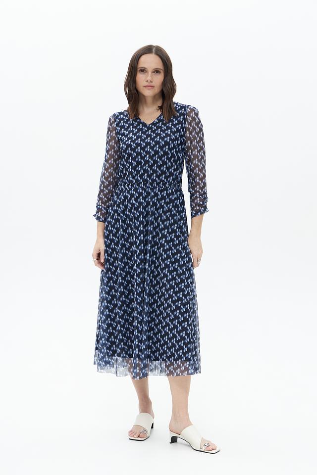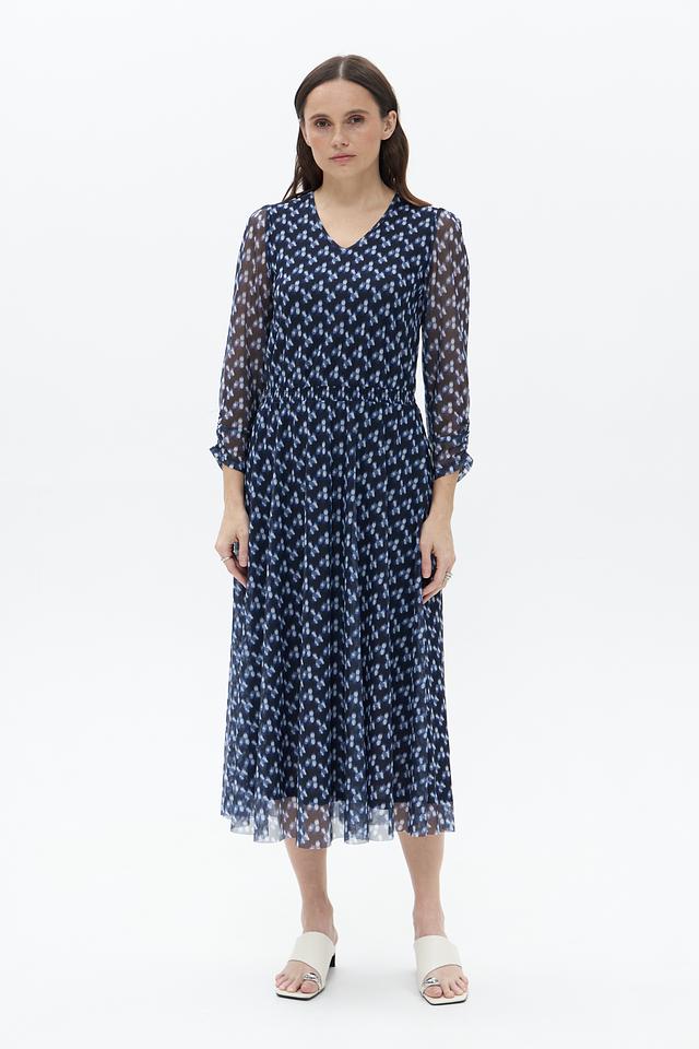 Платье More and More синего цвета с нежным цветочным принтом – идеальный выбор для создания романтичного образа. Легкая полупрозрачная ткань и плиссированная юбка придают модели воздушность и изящество. Состав: полиэстер 92%, эластан 8%