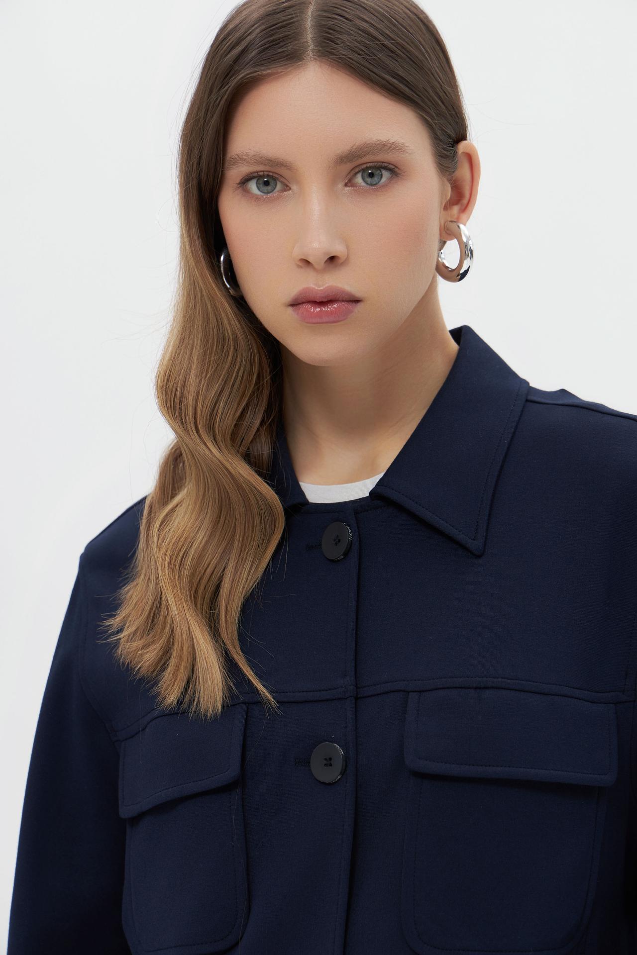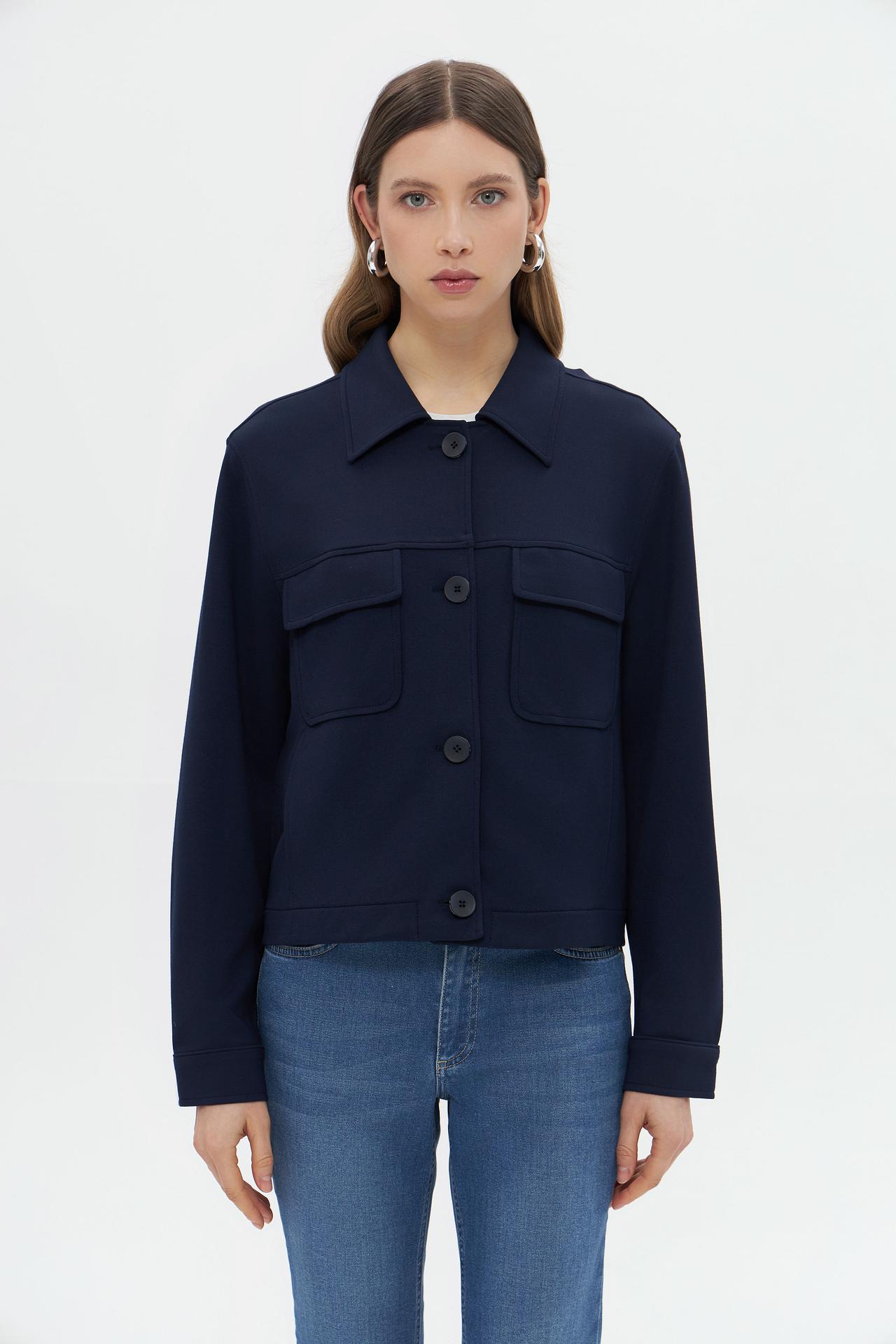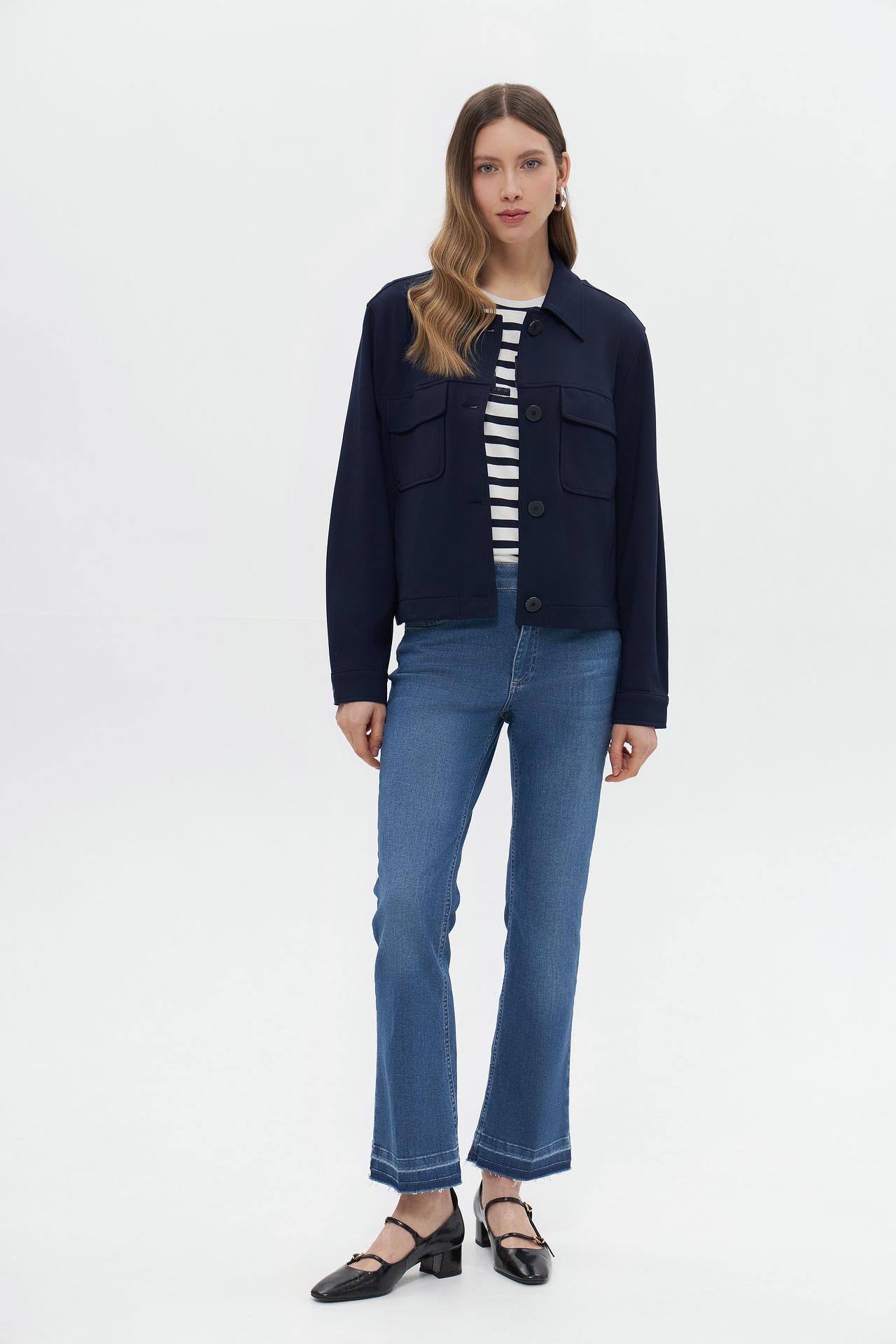 Жакет MORE and MORE синий с накладными карманами и пуговицами