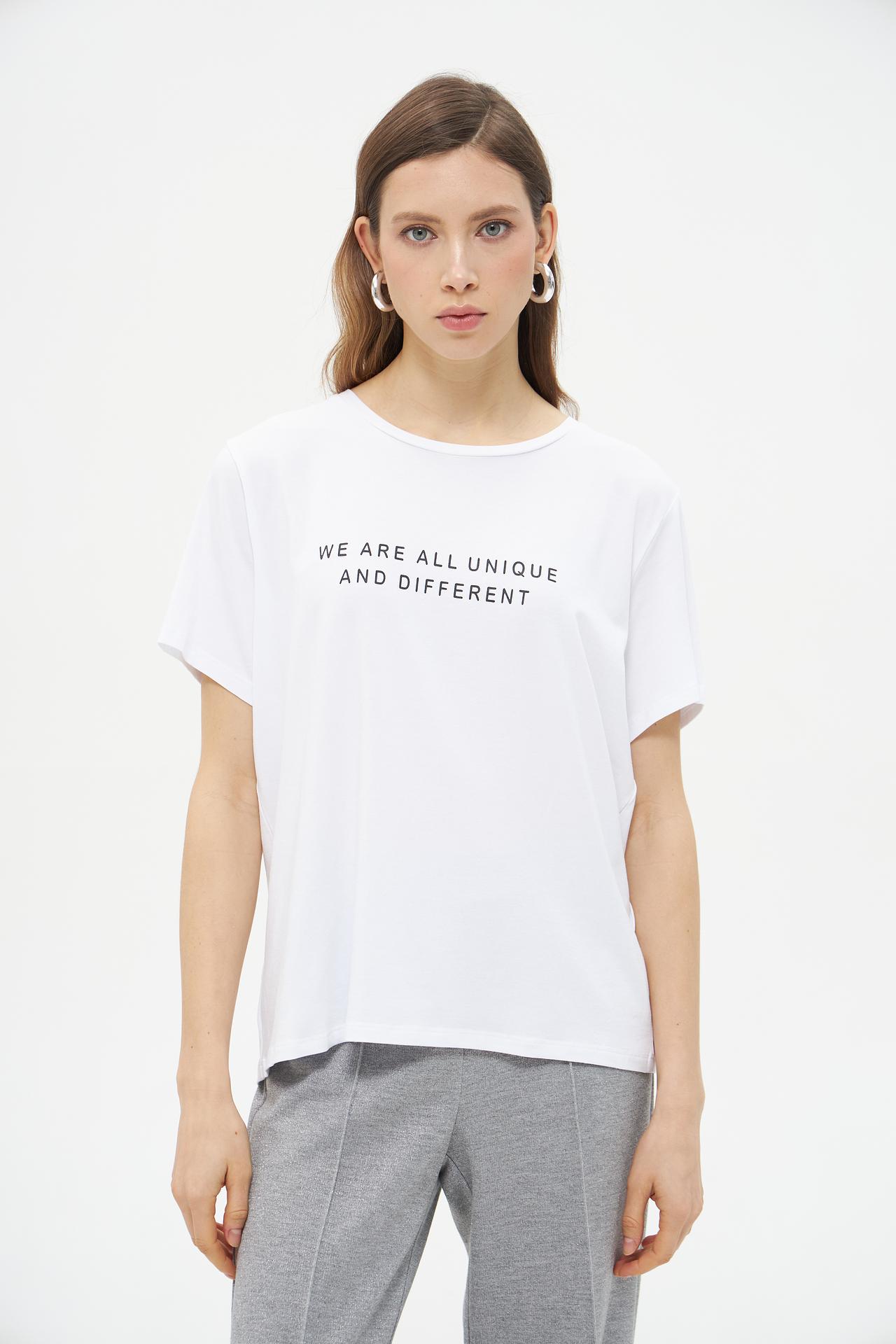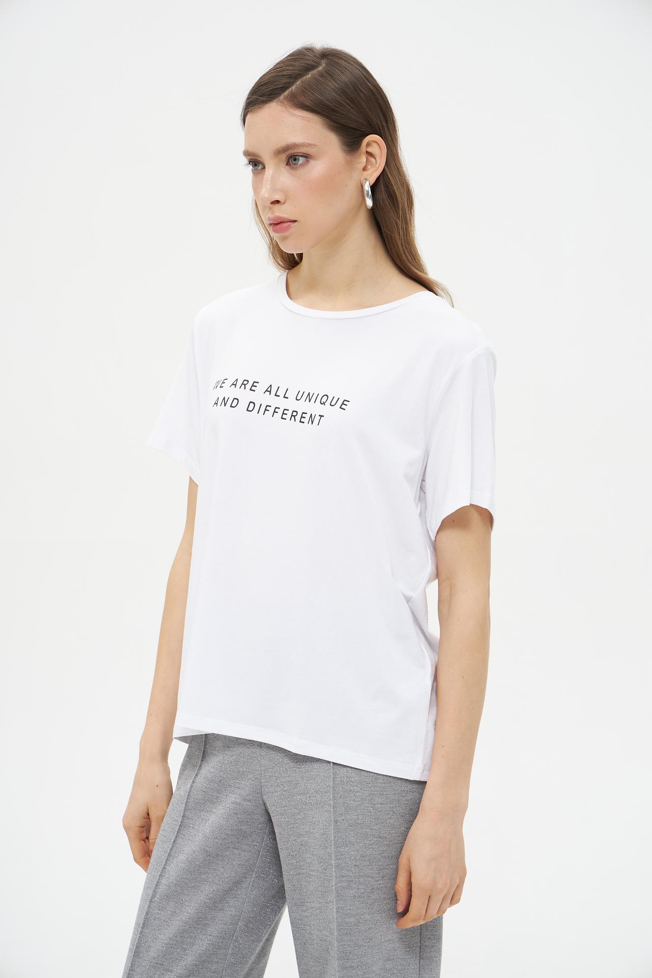 Классическая белая футболка от MORE and MORE - идеальный выбор для создания легкого и непринужденного образа. Благодаря премиальному составу ткани (48% хлопок, 48% модал, 4% эластан) футболка отлично держит форму, приятна к телу и обеспечивает комфорт в течение всего дня. Декорирована стильной надписью, добавляющей изюминку в ваш повседневный гардероб. Эта футболка станет незаменимой вещью в вашем гардеробе, подходящей для любого случая.