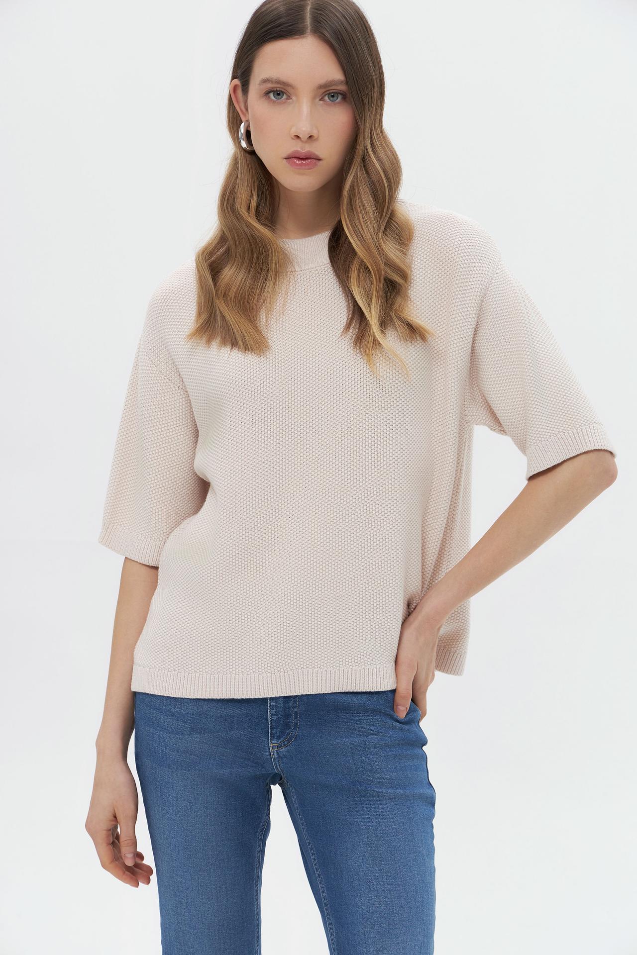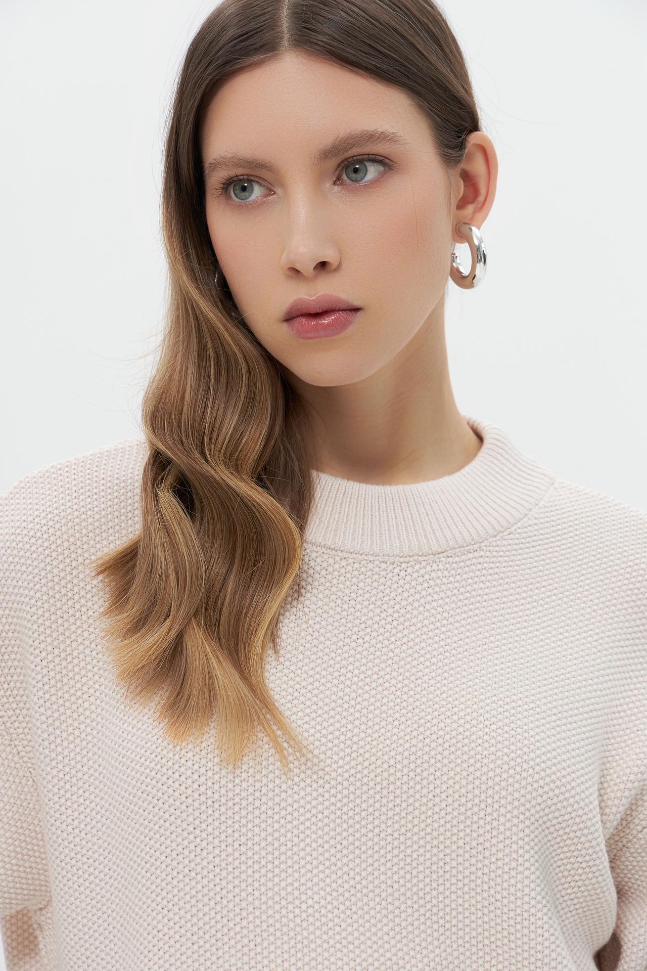- Универсальный дизайн: Однотонный бежевый оттенок и классический круглый вырез делают этот пуловер универсальной базовой вещью. Он легко сочетается как с джинсами и брюками, так и с юбками, создавая множество стильных комплектов.