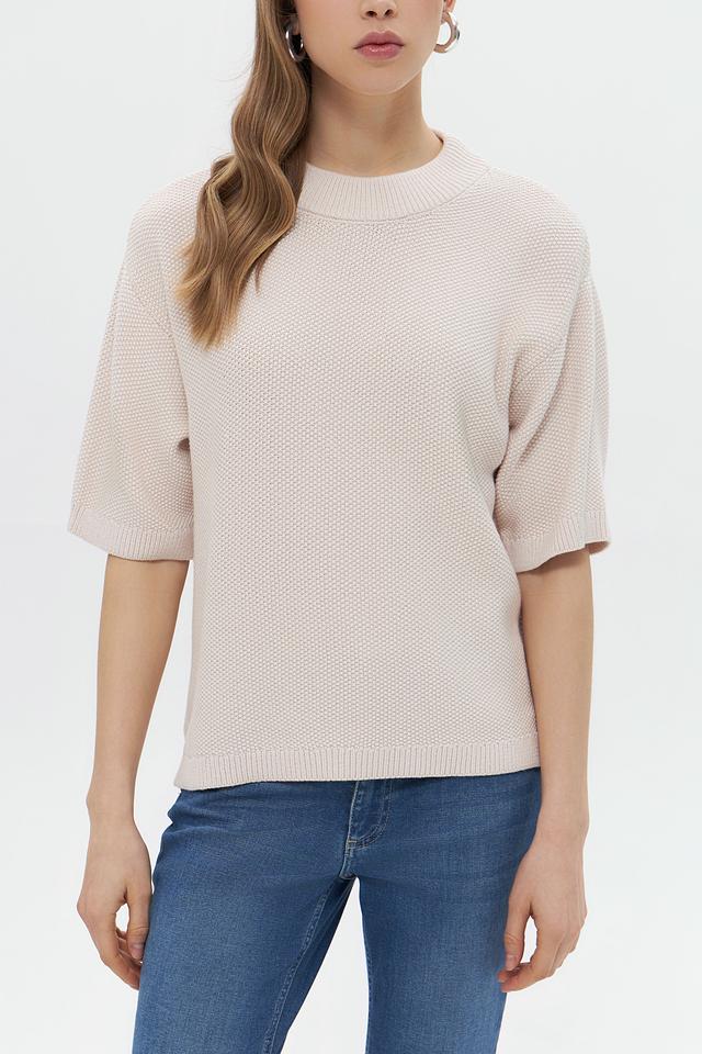 Бежевый пуловер от MORE and MORE с коротким рукавом и округлым вырезом горловины станет отличным дополнением к вашему гардеробу. Изготовлен из мягкого трикотажа с текстурной вязкой, обеспечивающей комфорт и стильный вид. Состав: вискоза 50%, полиэстер 28%, полиамид 22%