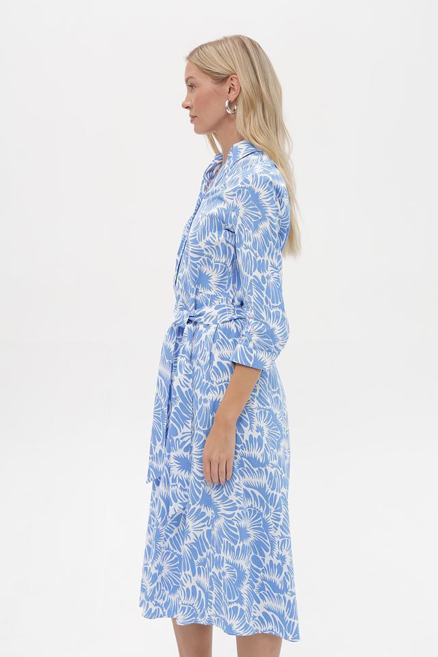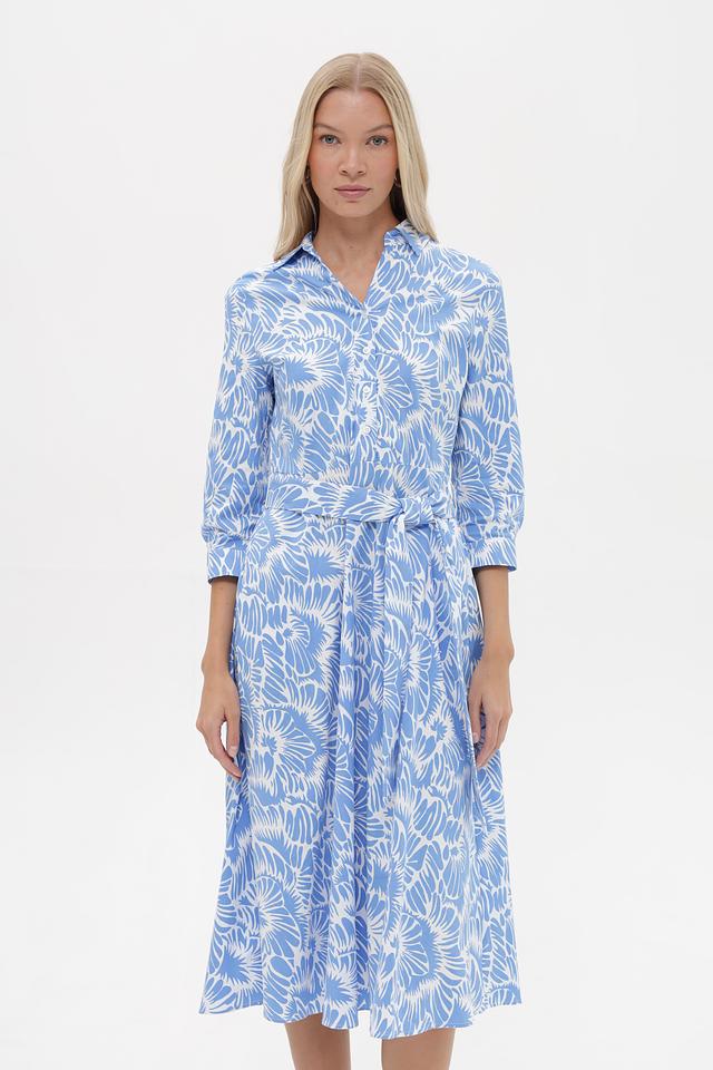 Голубое платье-рубашка от MORE and MORE с ярким цветочным принтом. Модель выполнена из хлопка с добавлением эластана, что обеспечивает комфорт и свободу движений. Состав: хлопок 97%, эластан 3%