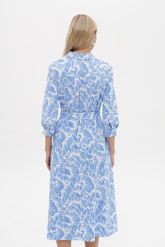 Платье имеет классический крой, воротник рубашку и застежку на пуговицы по всей длине. Рукава длиной 3/4 и пояс в комплекте позволяют подчеркнуть талию и создать женственный силуэт. Боковые карманы добавляют практичности.