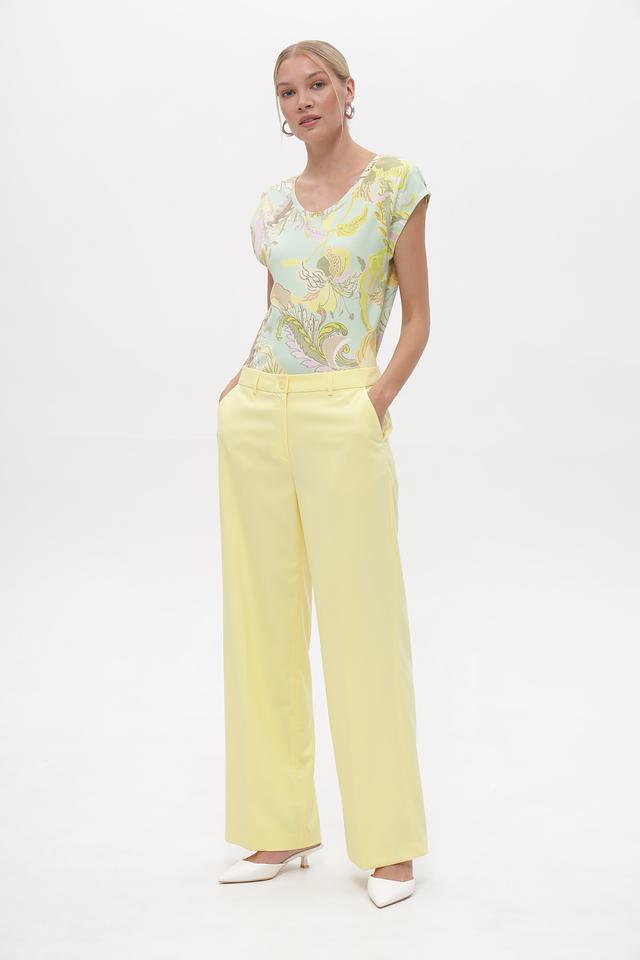 Женские брюки клёш от бренда MORE and MORE – стильное и комфортное решение для создания модных образов. Модель выполнена в нежном лимонном цвете, который освежит ваш гардероб.