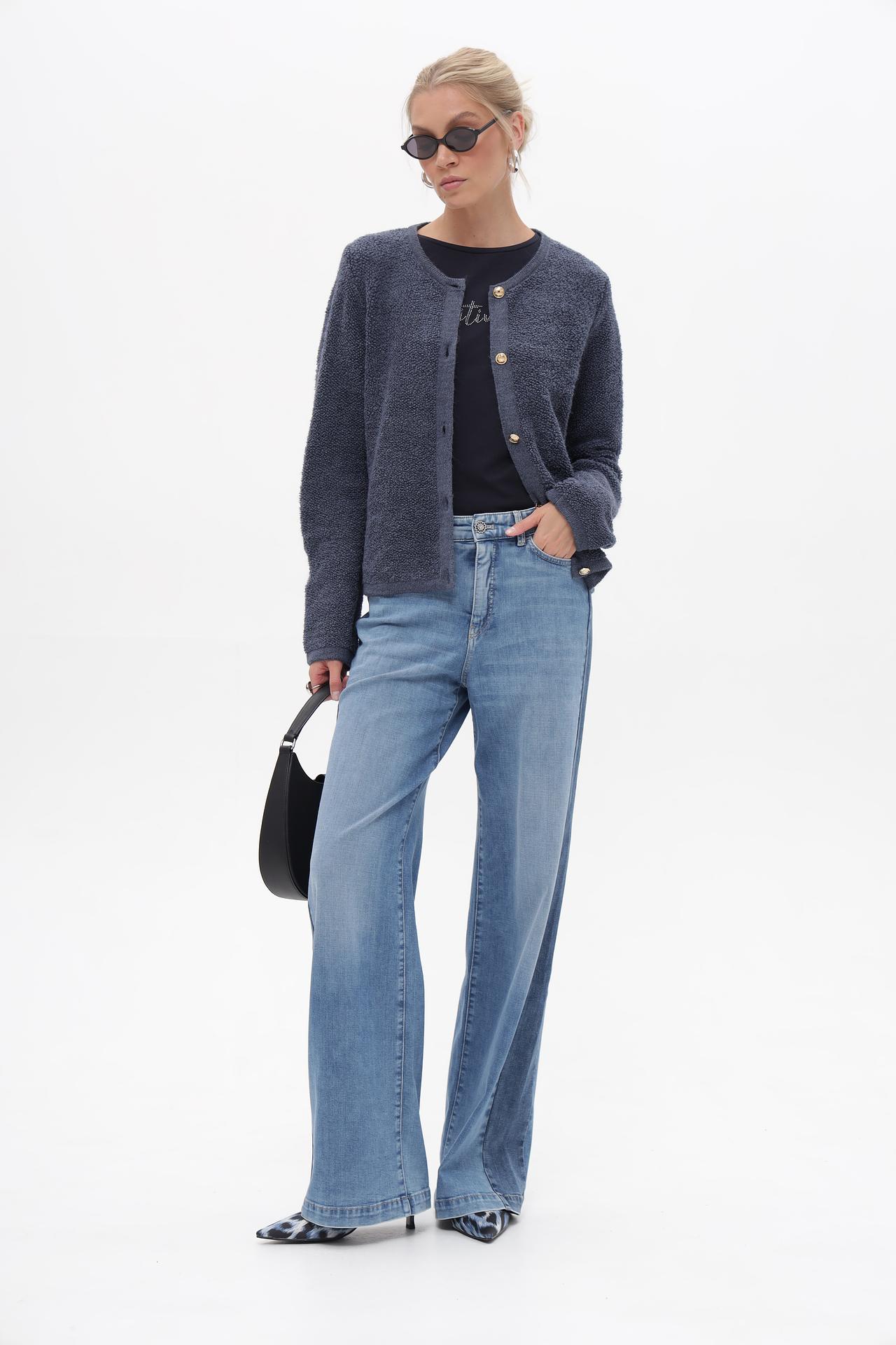 - Универсальность: Жакет легко сочетается с различными предметами гардероба, от базовых футболок до нарядных блуз. Он станет прекрасным дополнением к джинсам, брюкам или юбкам, создавая стильные многослойные образы.