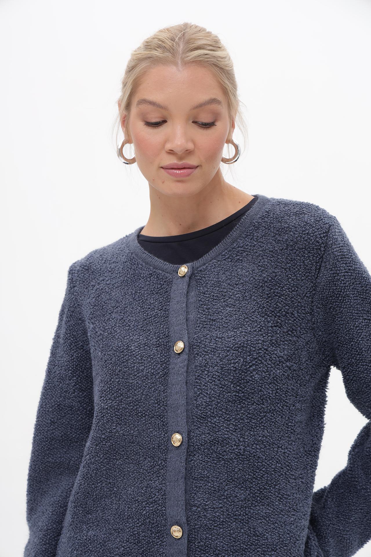 - Дизайн: Модель отличает лаконичный дизайн с круглым вырезом горловины и застежкой на пуговицы. Золотистые пуговицы добавляют изделию элегантности и делают его более нарядным.