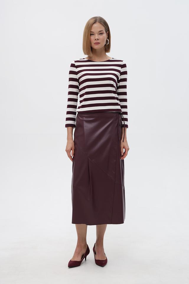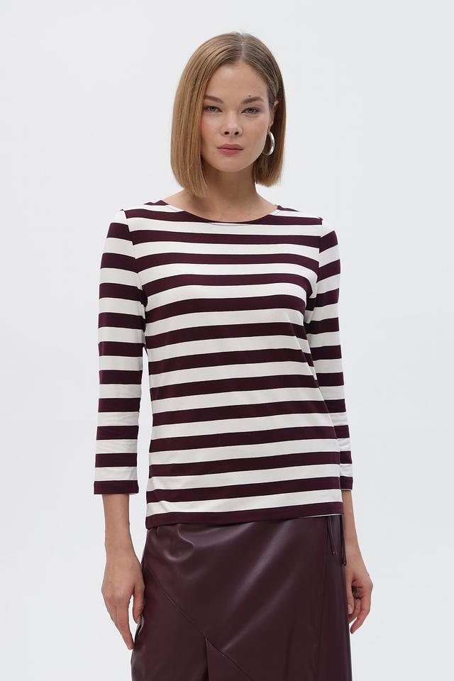 Блузка More and More бордового цвета с классическим полосатым принтом. Изготовлена из мягкой вискозы с добавлением эластана для комфорта и хорошей посадки. Подчеркнет ваш стиль и станет отличным дополнением к базовому гардеробу. Состав: вискоза 95%, эластан 5%